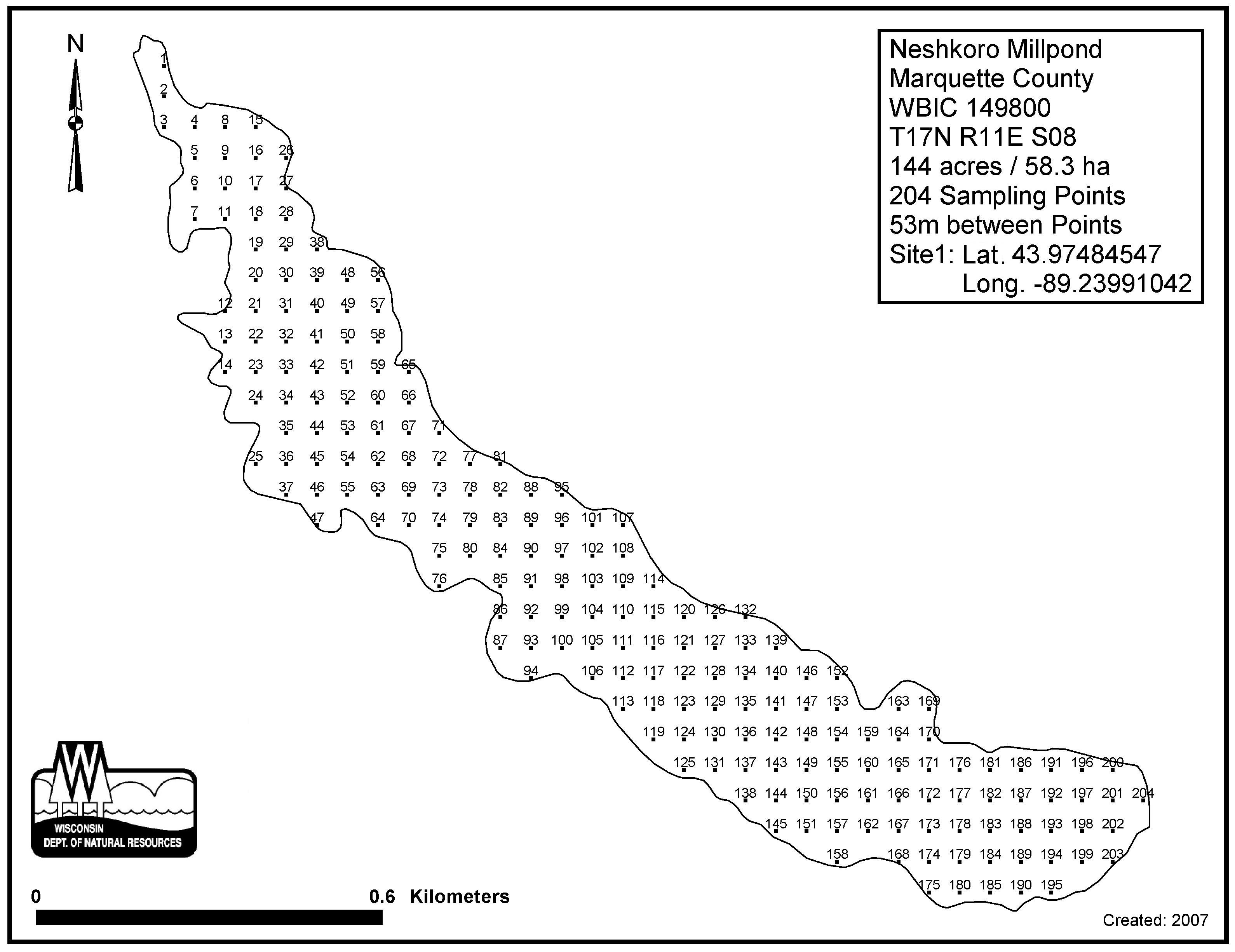 Neshkoro Millpond, Marquette County - Aquatic Plant Sampling Map (53 mpts)