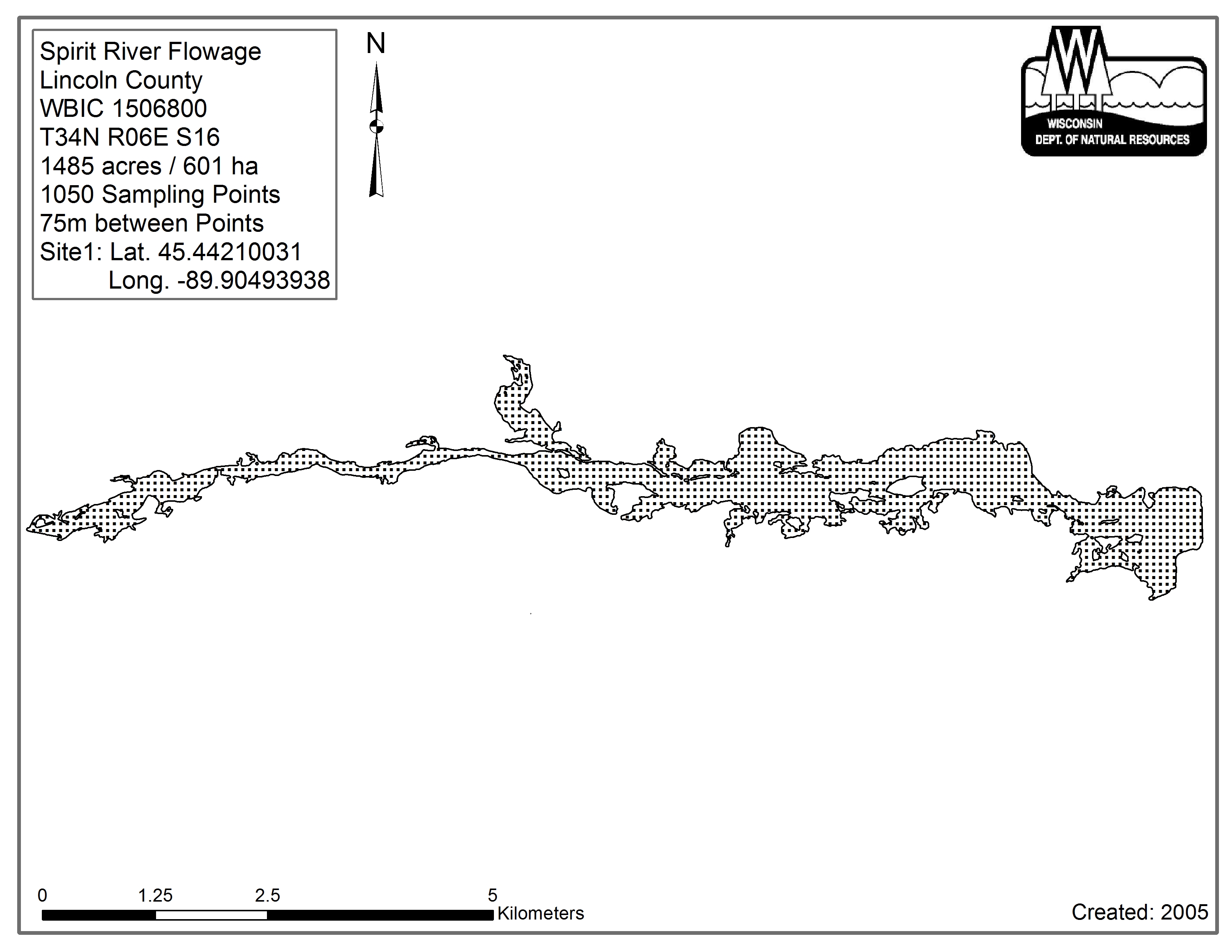 Spirit River Flowage, Lincoln County - Aquatic Plant Sampling Map (5)(75 mpts)