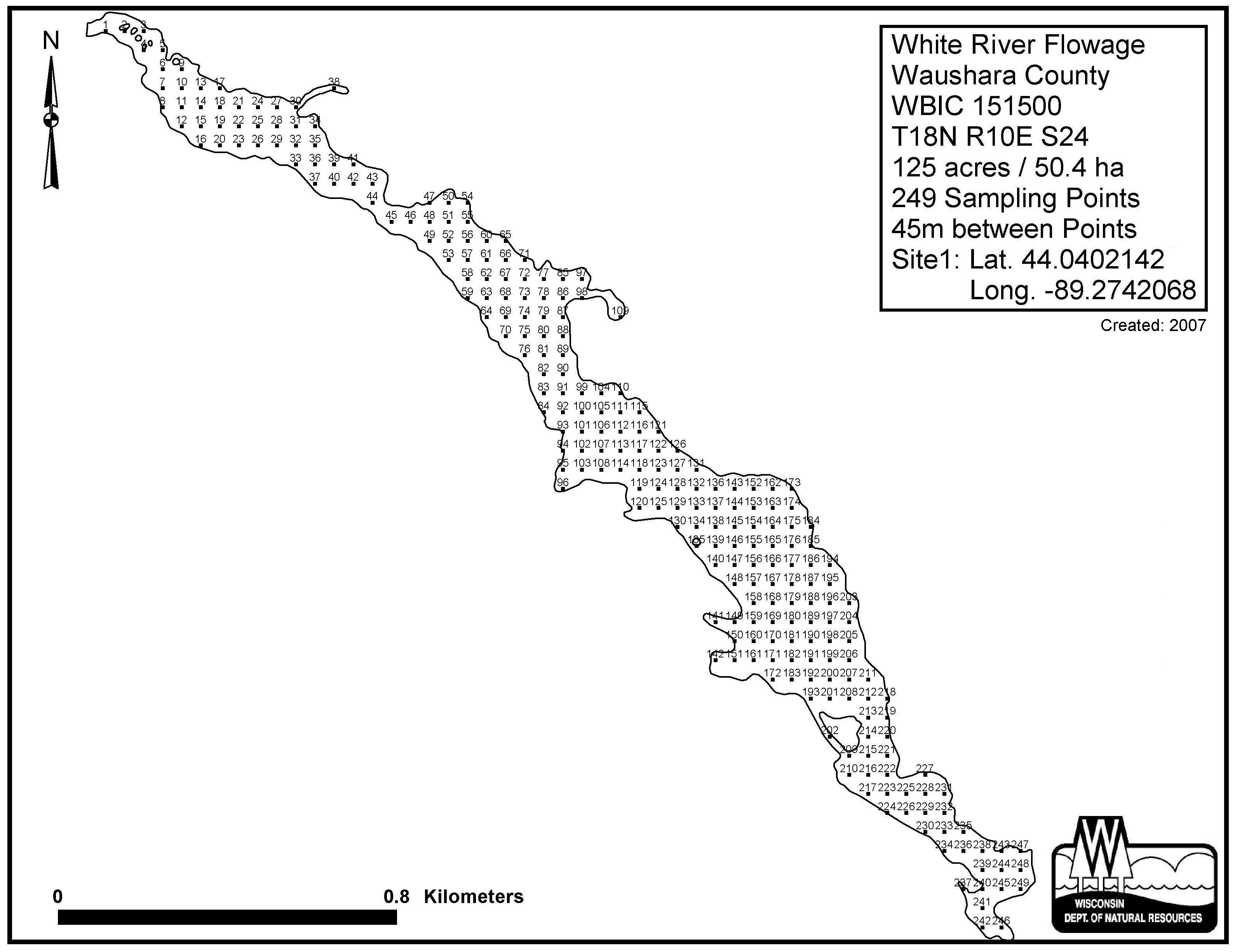 White River Fl (Lower Pond), Waushara County - Aquatic Plant Sampling Map (45 mpts)