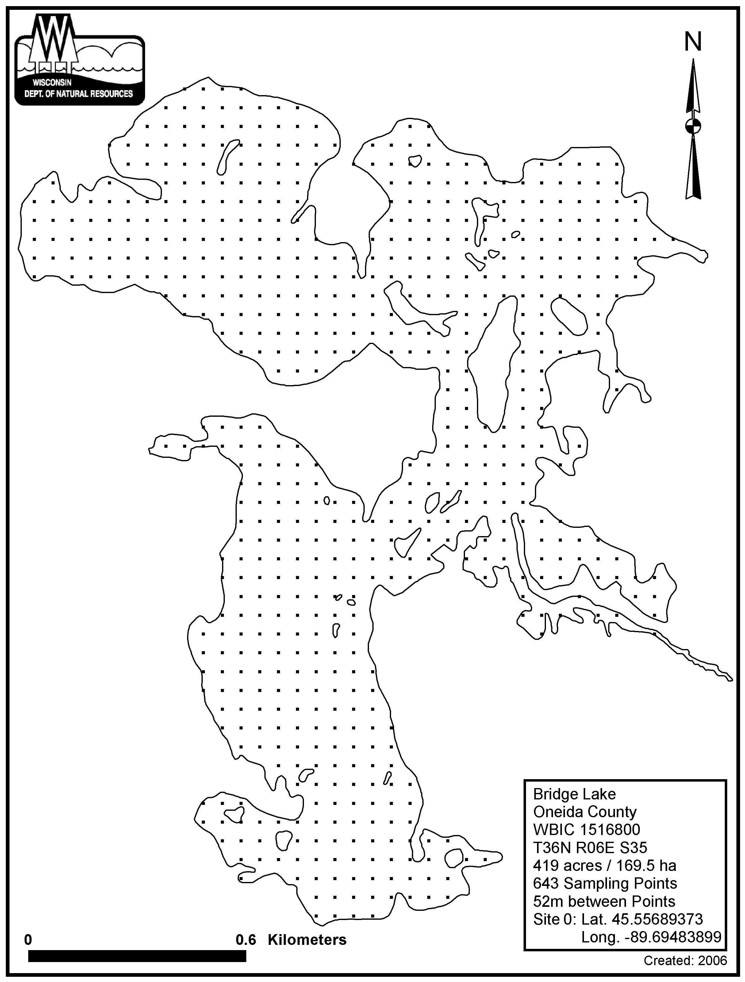 Bridge Lake, Oneida County - Aquatic Plant Sampling Map (1)(52 mpts)