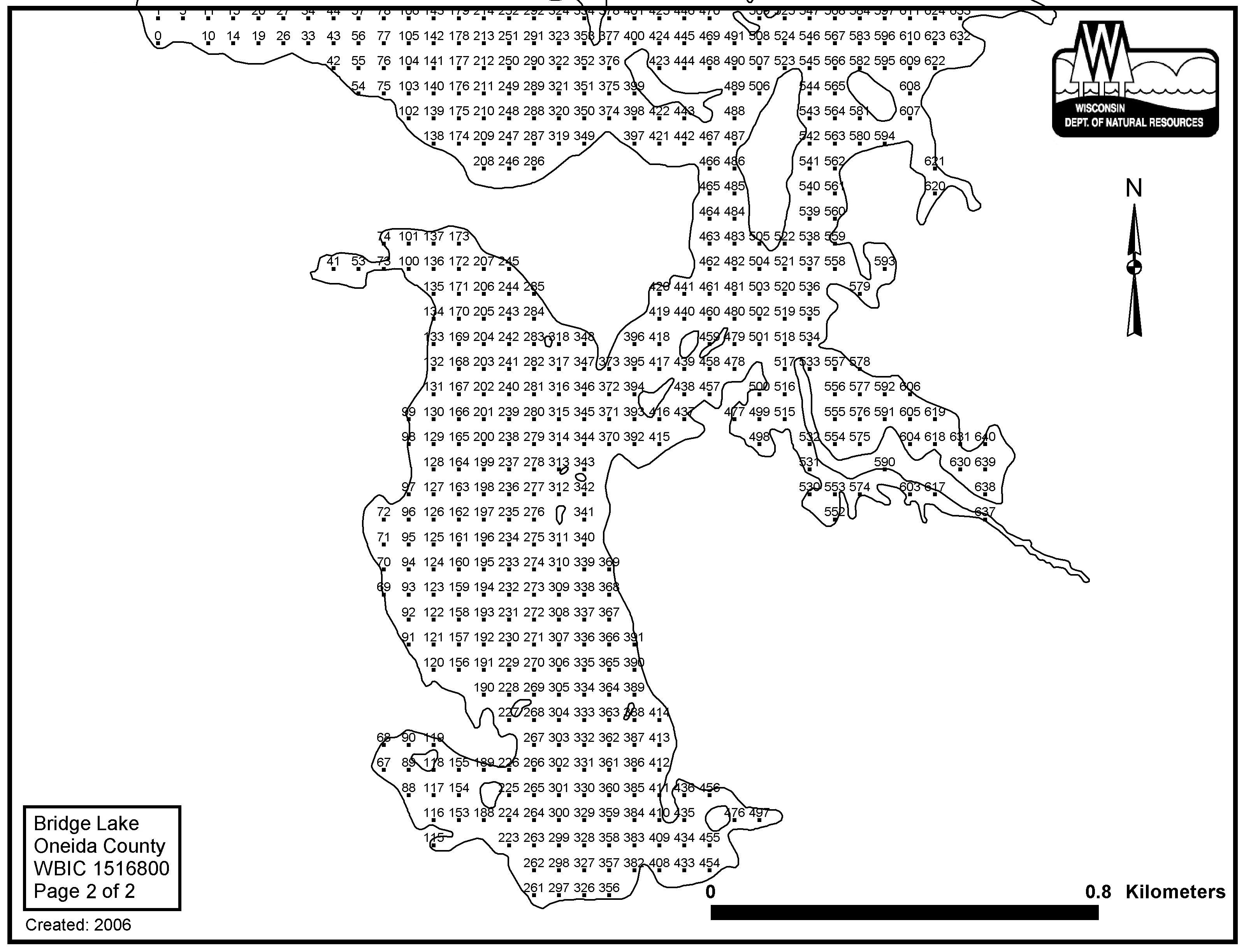Bridge Lake, Oneida County - Aquatic Plant Sampling Map (2)(52 mpts)