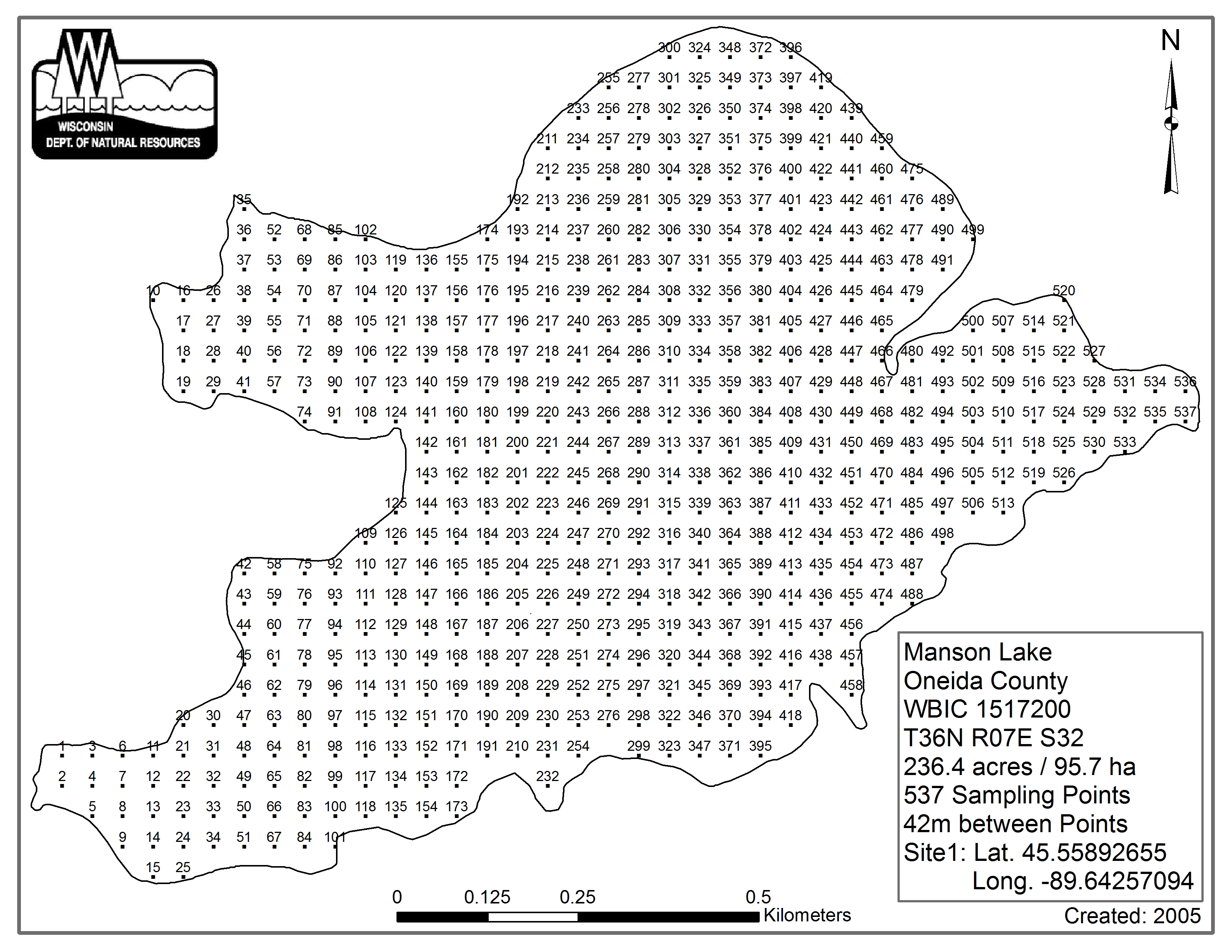 Manson Lake, Oneida County - Aquatic Plant Sampling Map (42 mpts)
