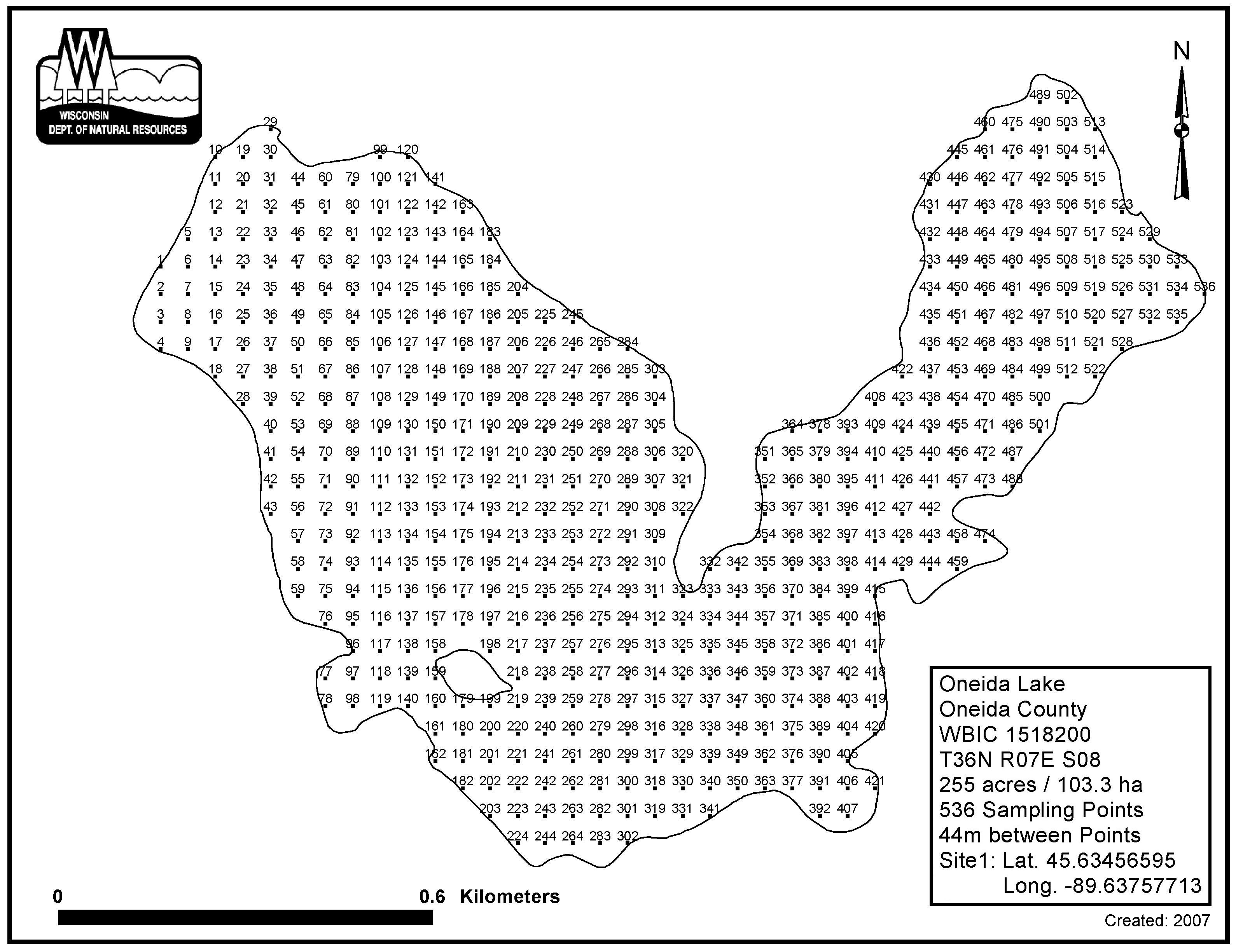 Oneida Lake, Oneida County - Aquatic Plant Sampling Map (44 mpts)