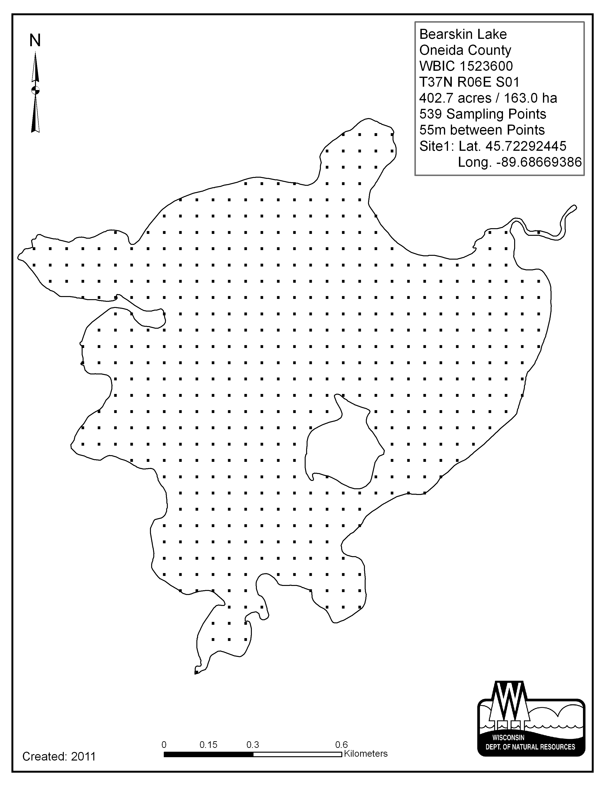 Bearskin Lake, Oneida County - Aquatic Plant Sampling Map (55 mpts)