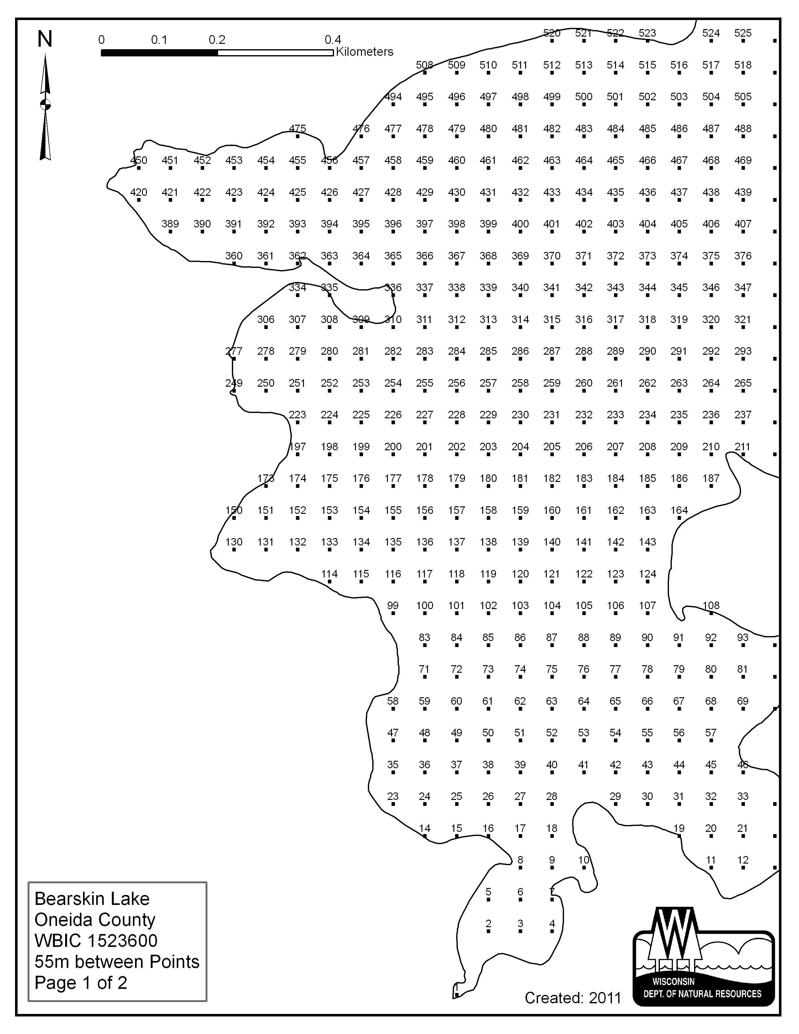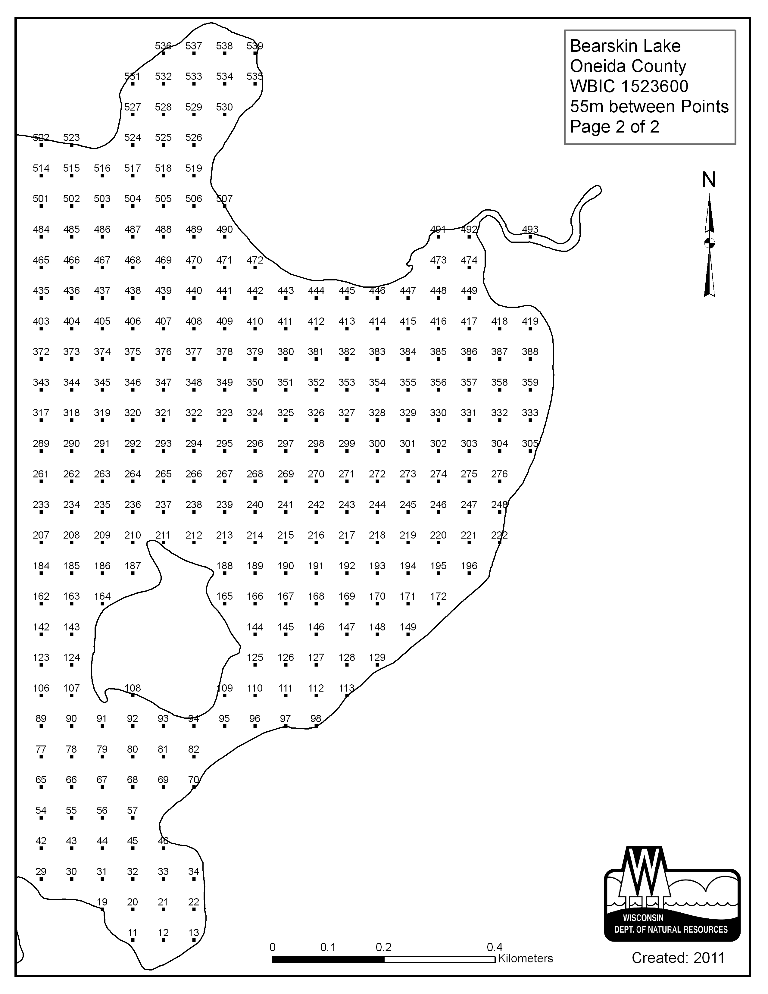 Bearskin Lake, Oneida County - Aquatic Plant Sampling Map (2)(55 mpts)
