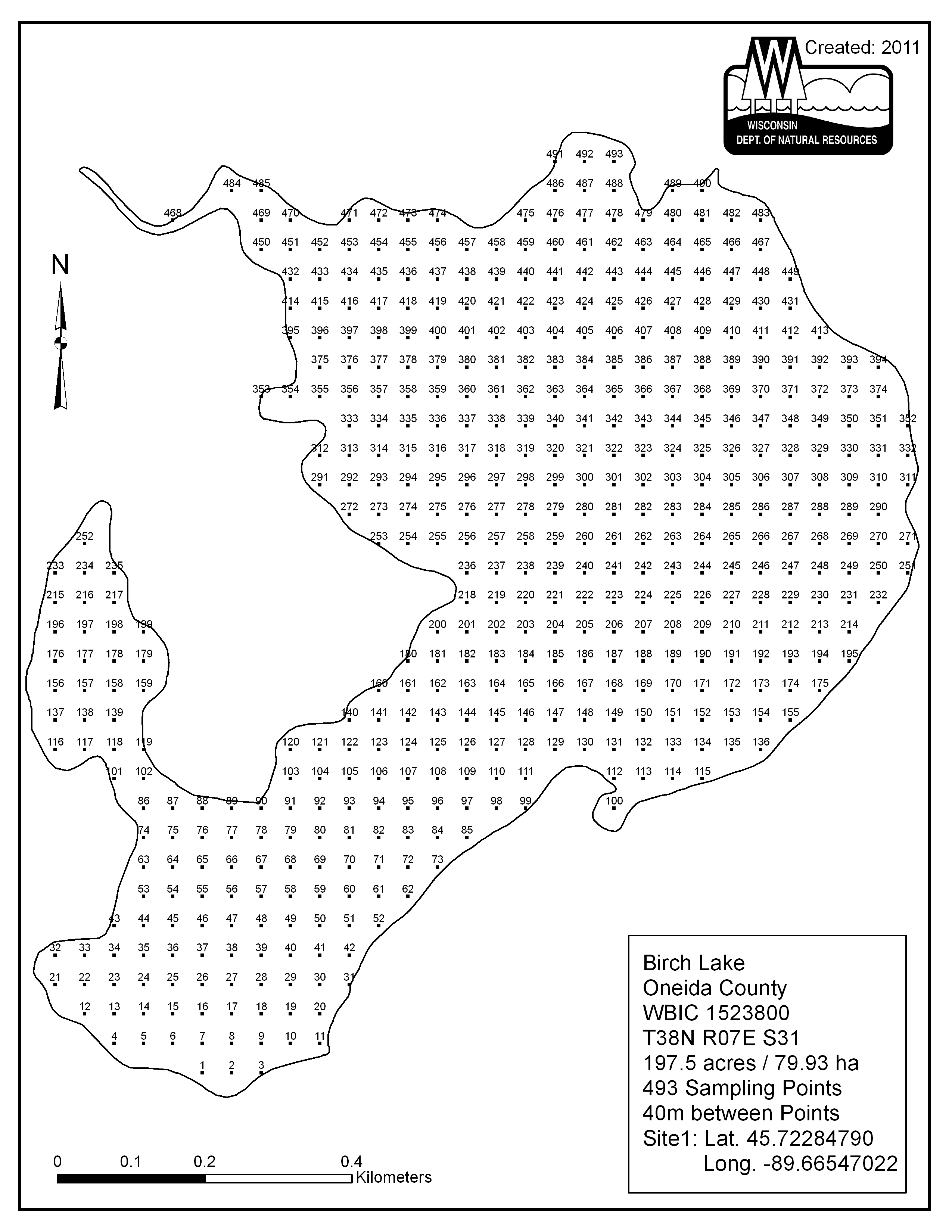Birch Lake, Oneida County - Aquatic Plant Sampling Map (40 mpts)