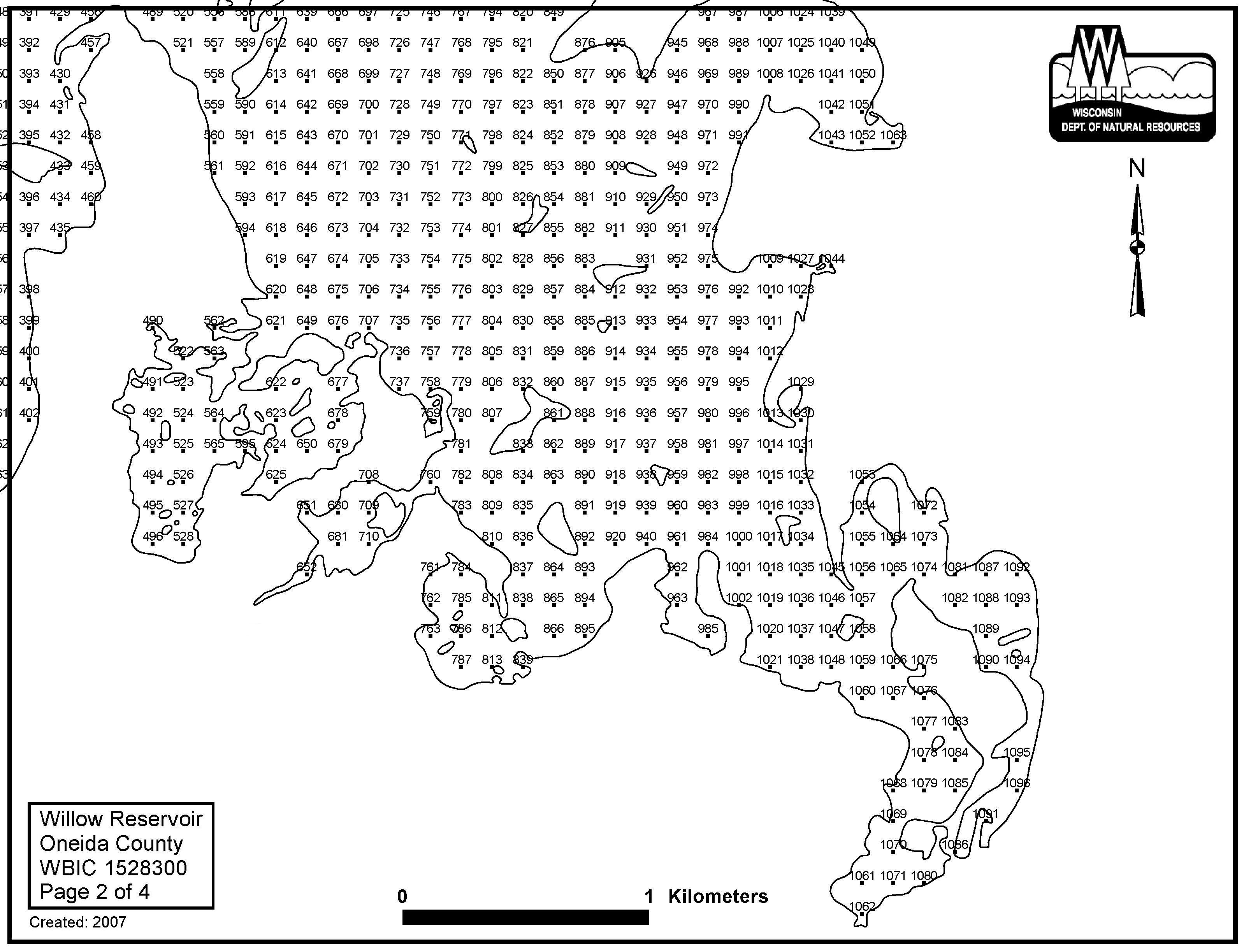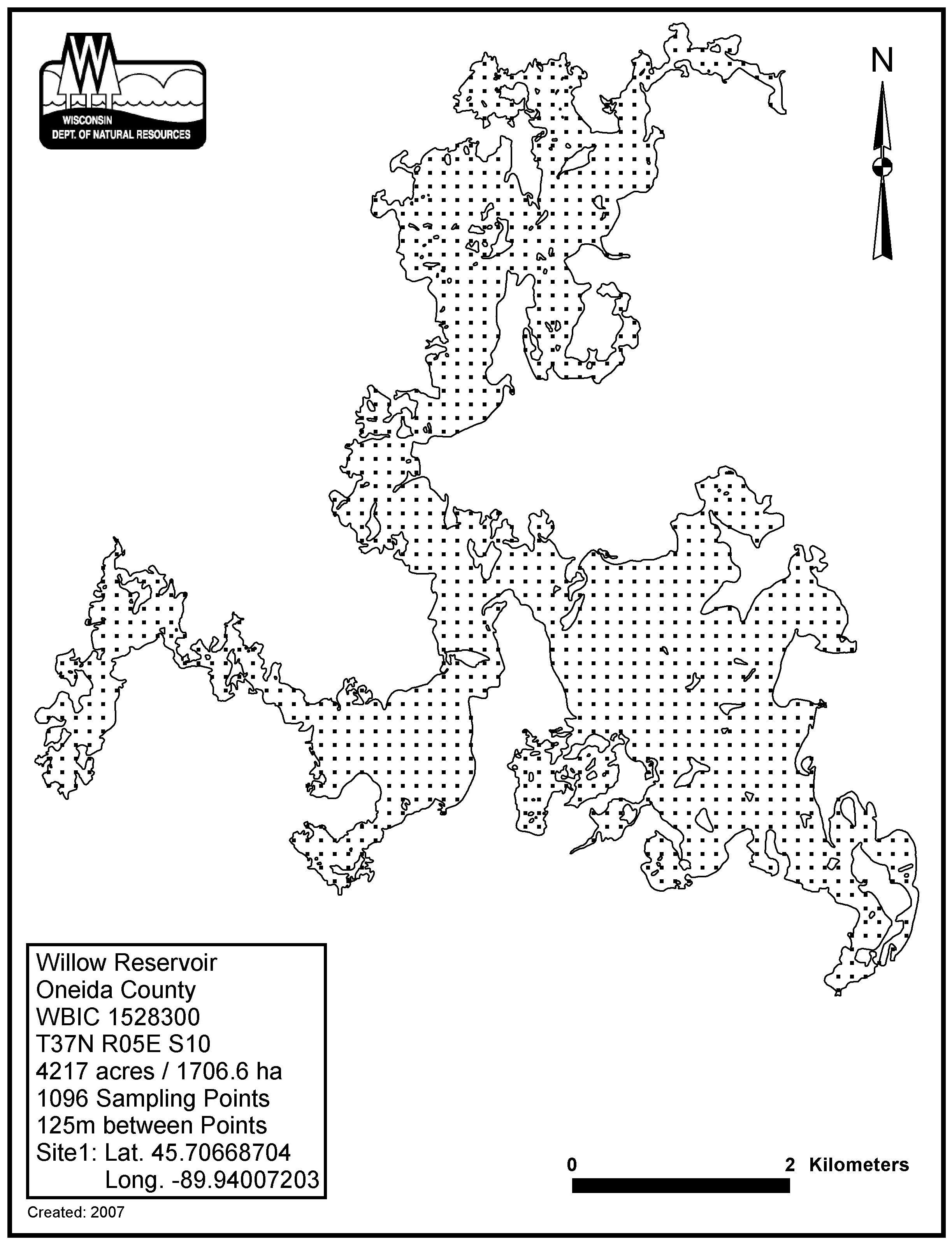 Willow Flowage, Oneida County - Aquatic Plant Sampling Map (2)(125 mpts)