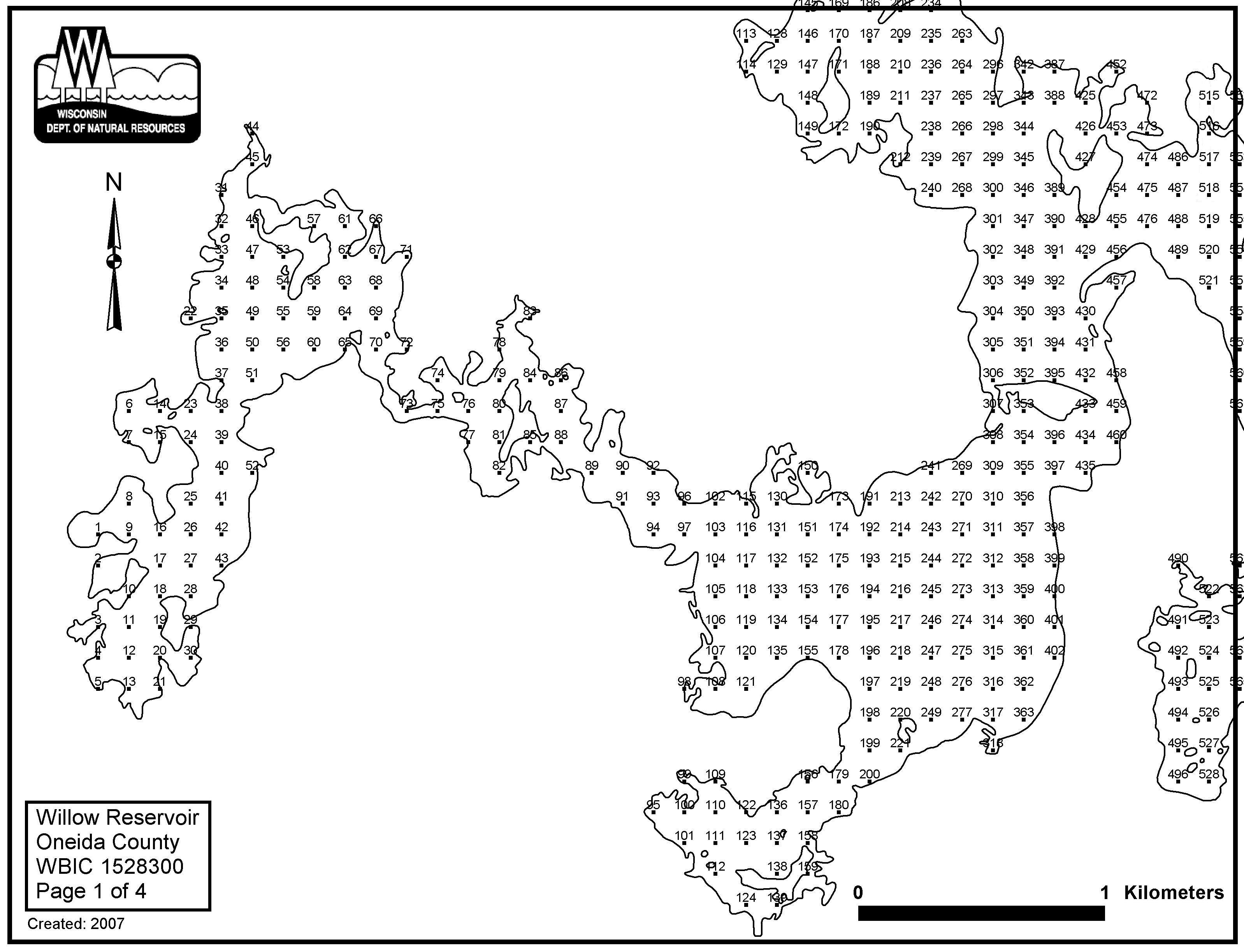 Willow Flowage, Oneida County - Aquatic Plant Sampling Map (1)(125 mpts)