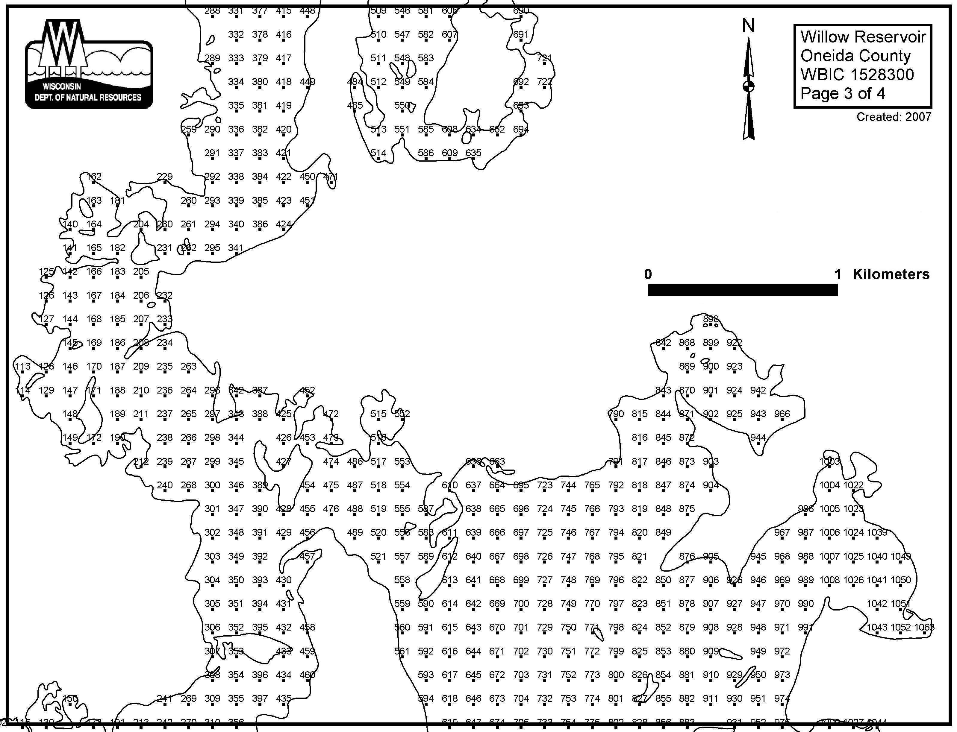 Willow Flowage, Oneida County - Aquatic Plant Sampling Map (3)(125 mpts)