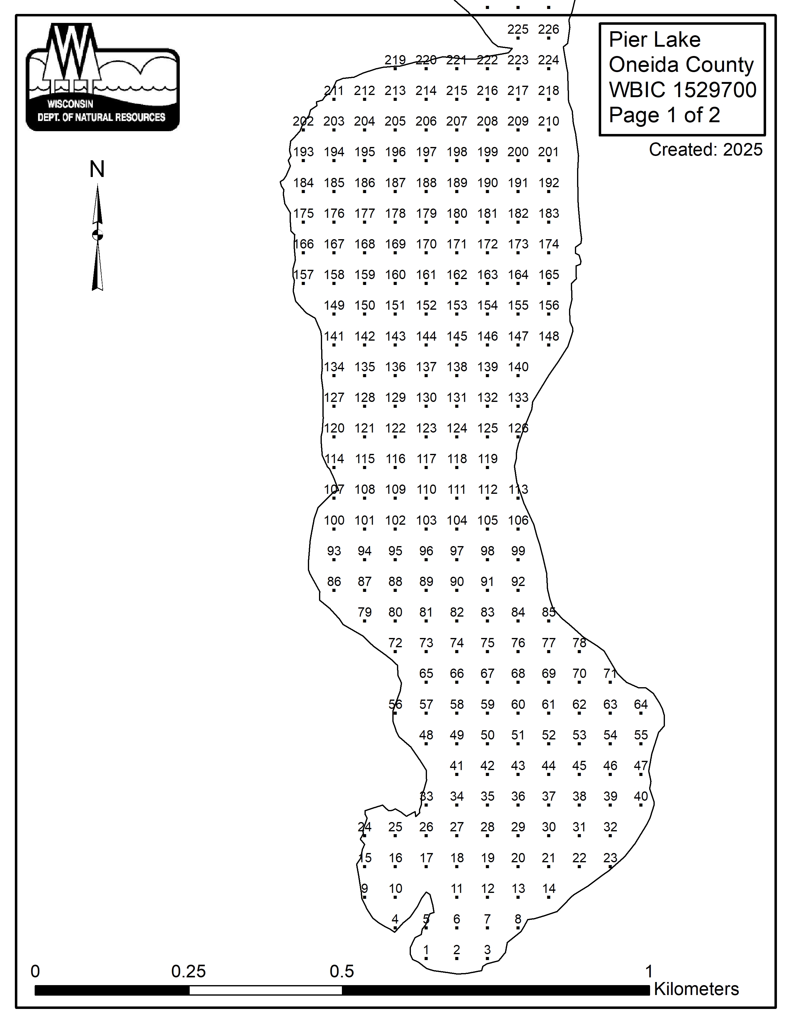 Pier Lake, Oneida County - Aquatic Plant Sampling Map (1)(50 mpts)