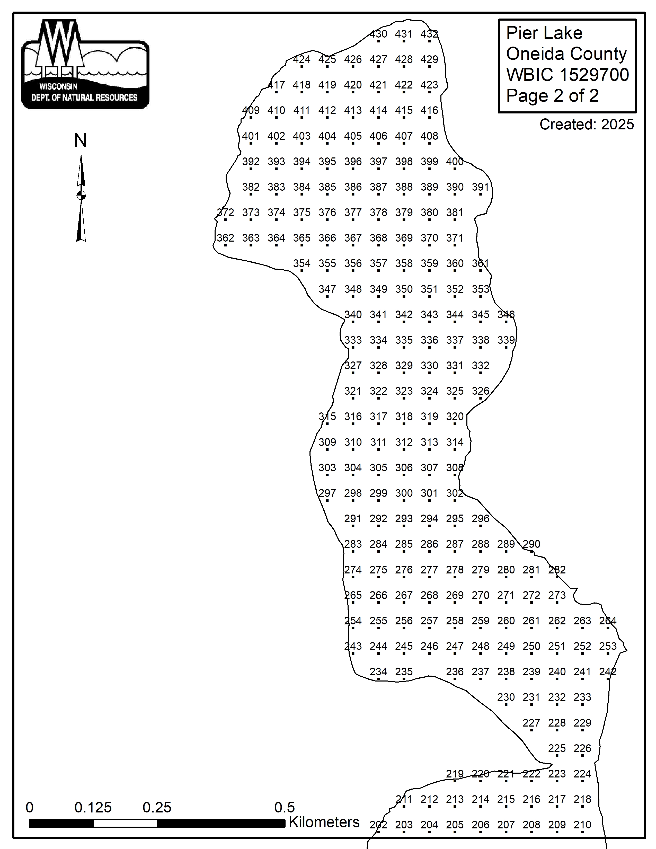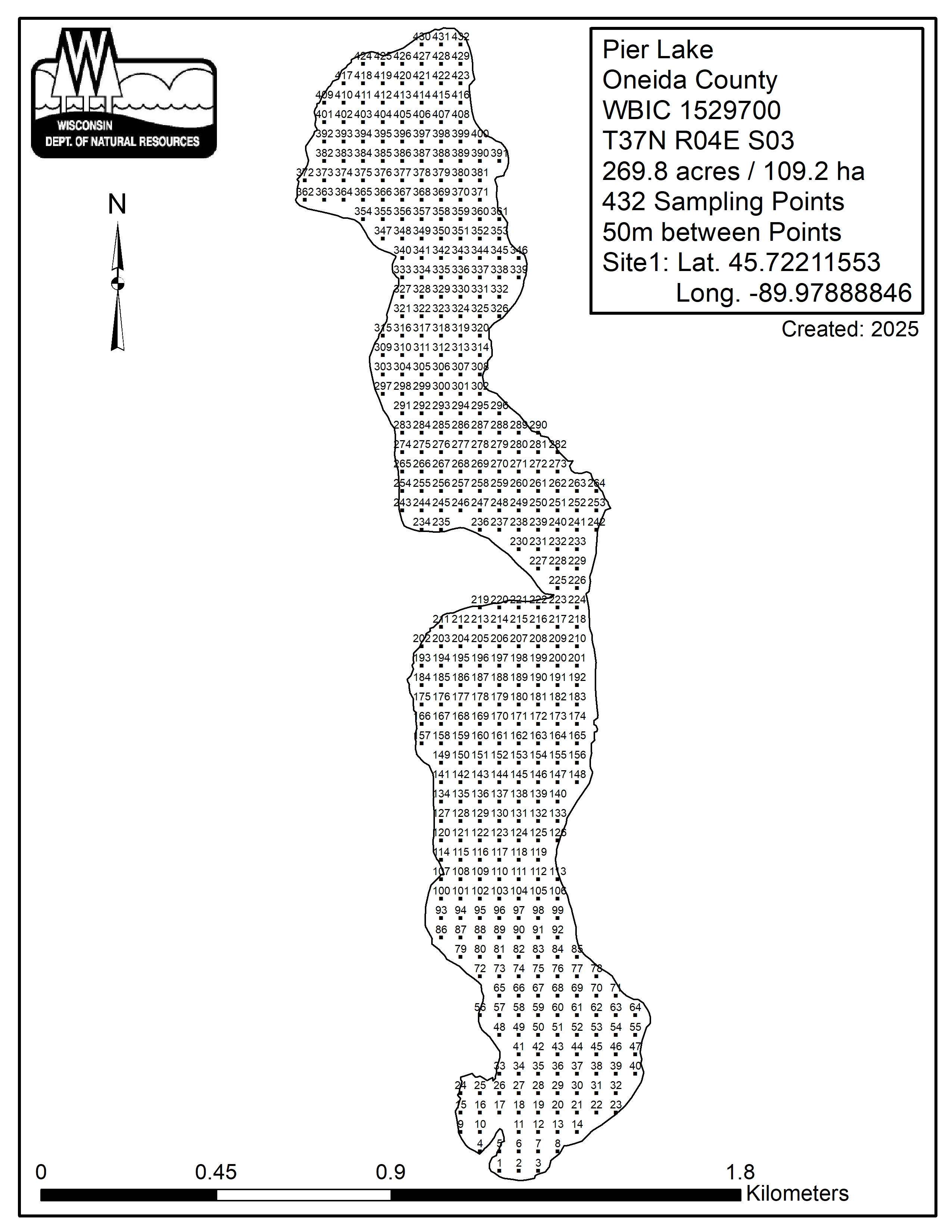 Pier Lake, Oneida County - Aquatic Plant Sampling Map (2)(50 mpts)