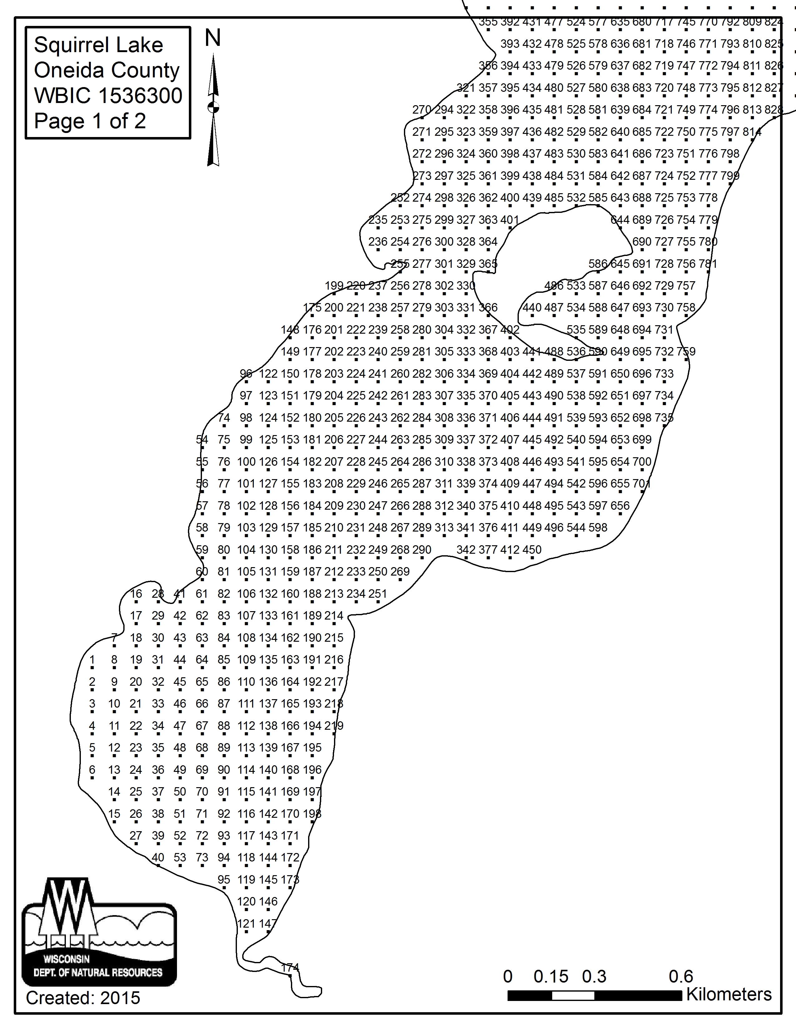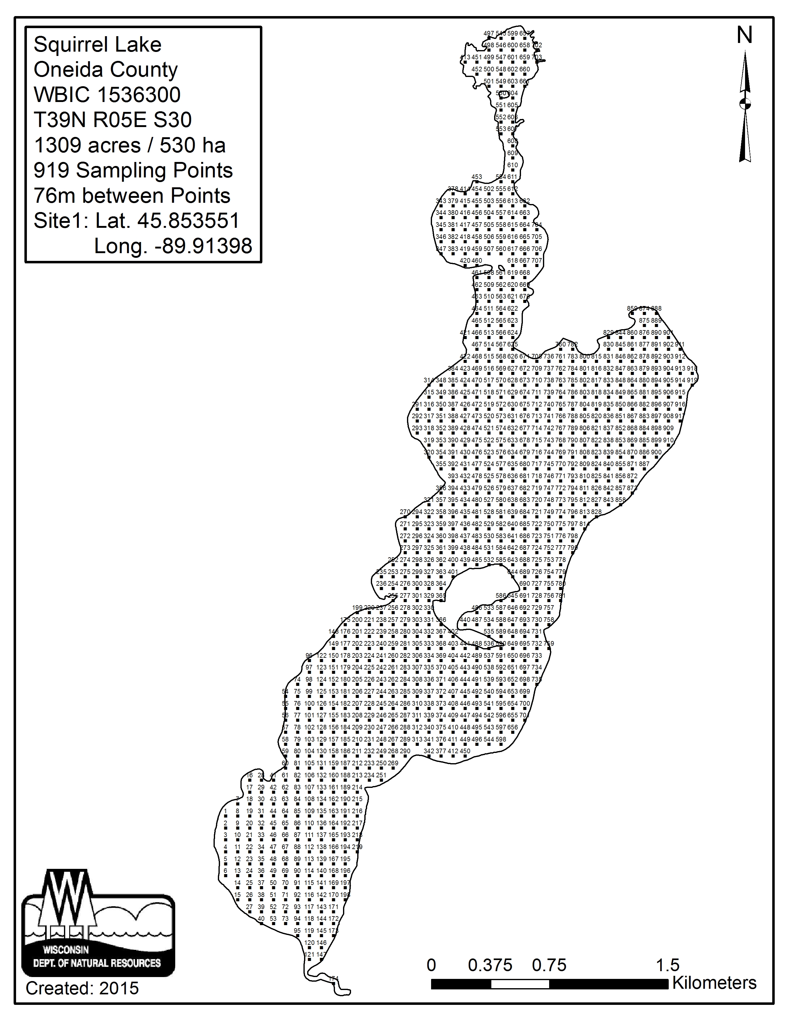 Squirrel Lake, Oneida County - Aquatic Plant Sampling Map (1)(76 mpts)