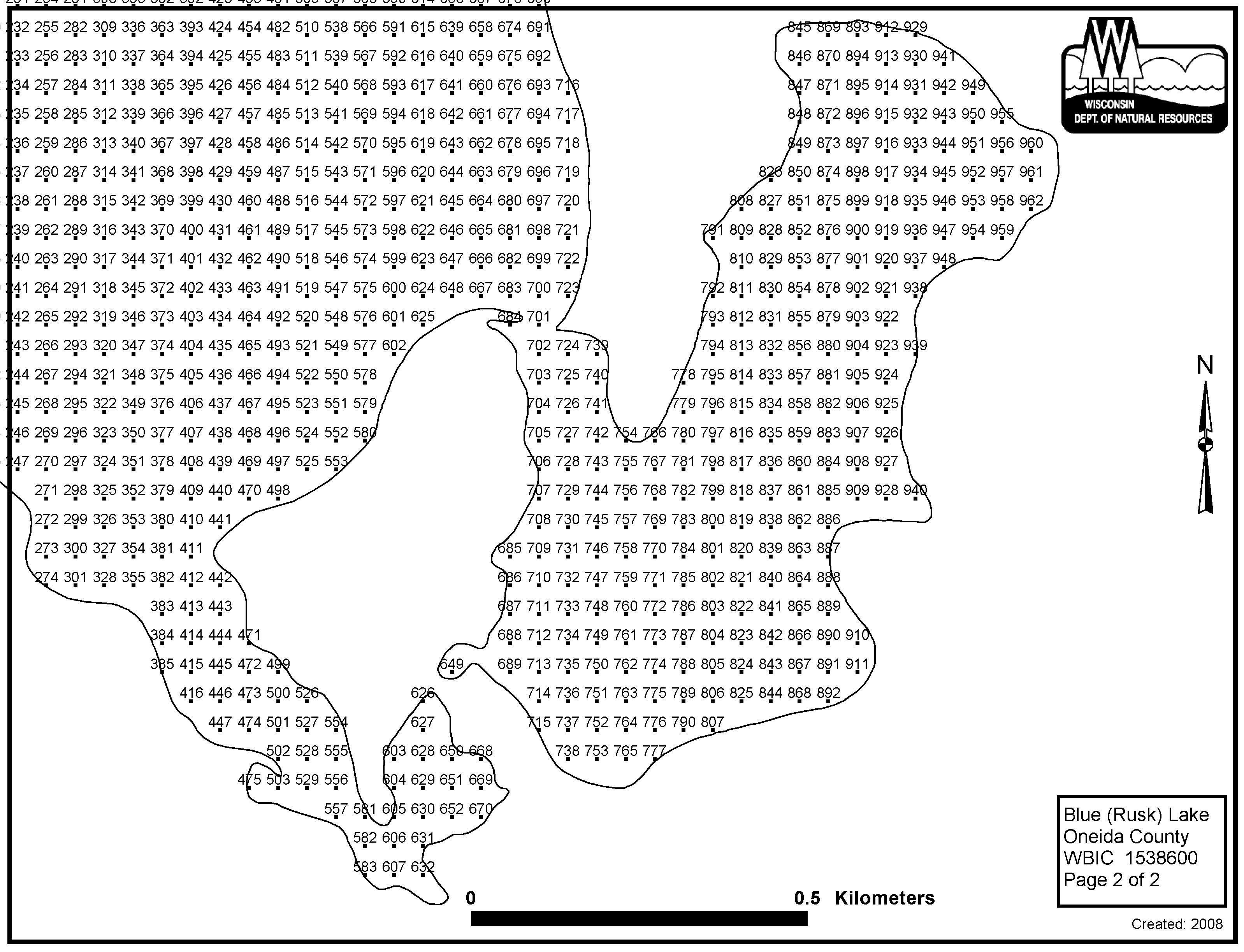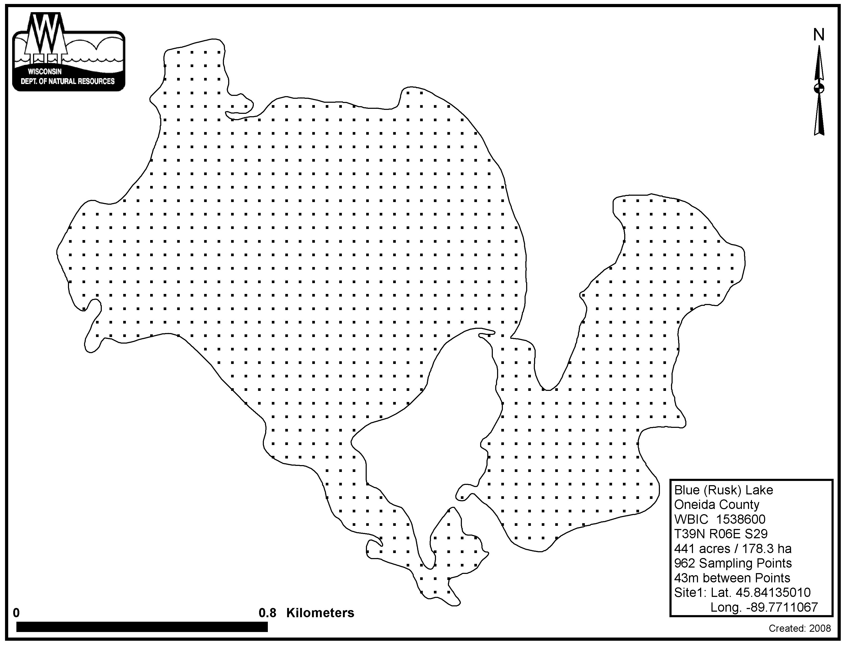 Blue Lake, Oneida County - Aquatic Plant Sampling Map (2)(43 mpts)