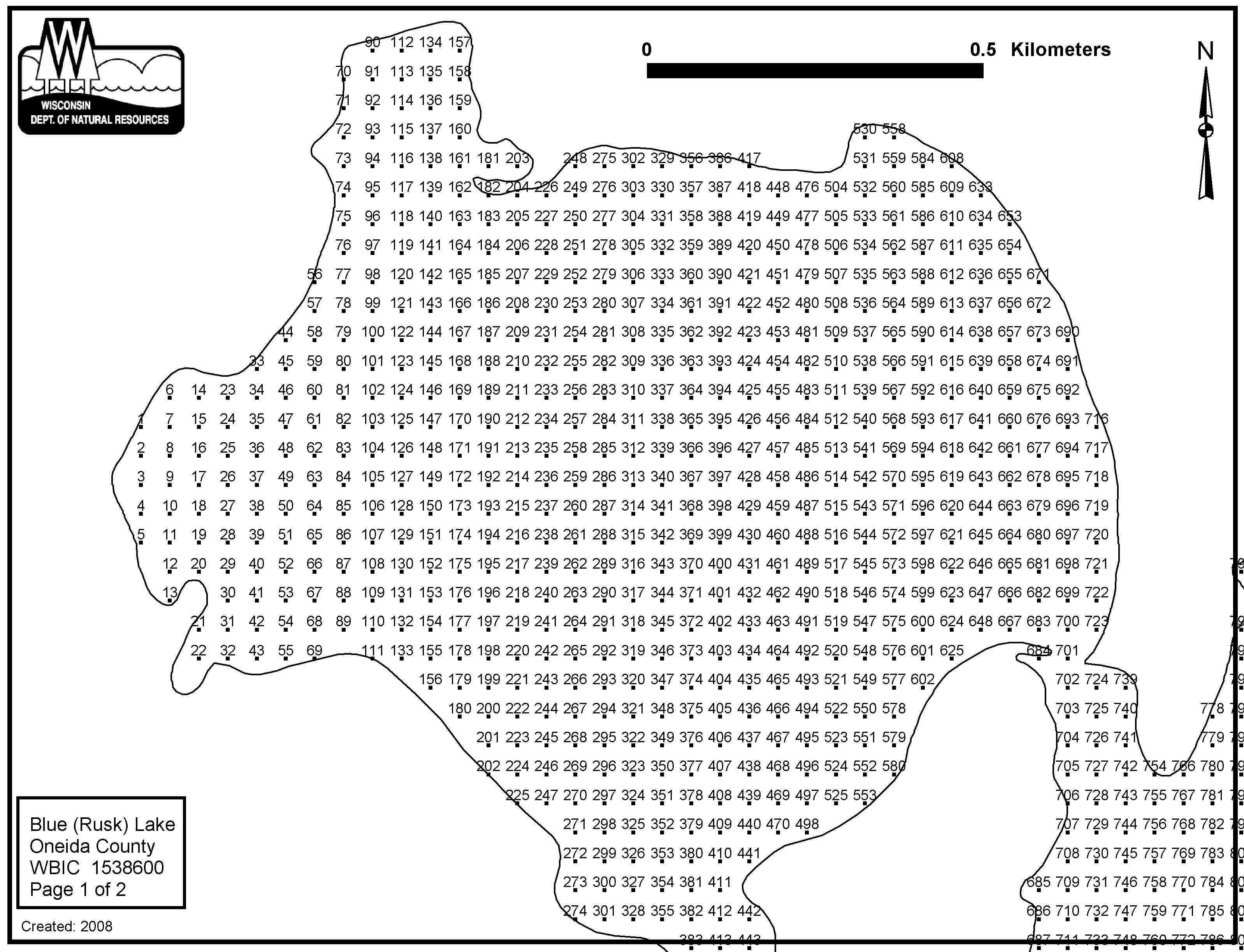 Blue Lake, Oneida County - Aquatic Plant Sampling Map (1)(43 mpts)