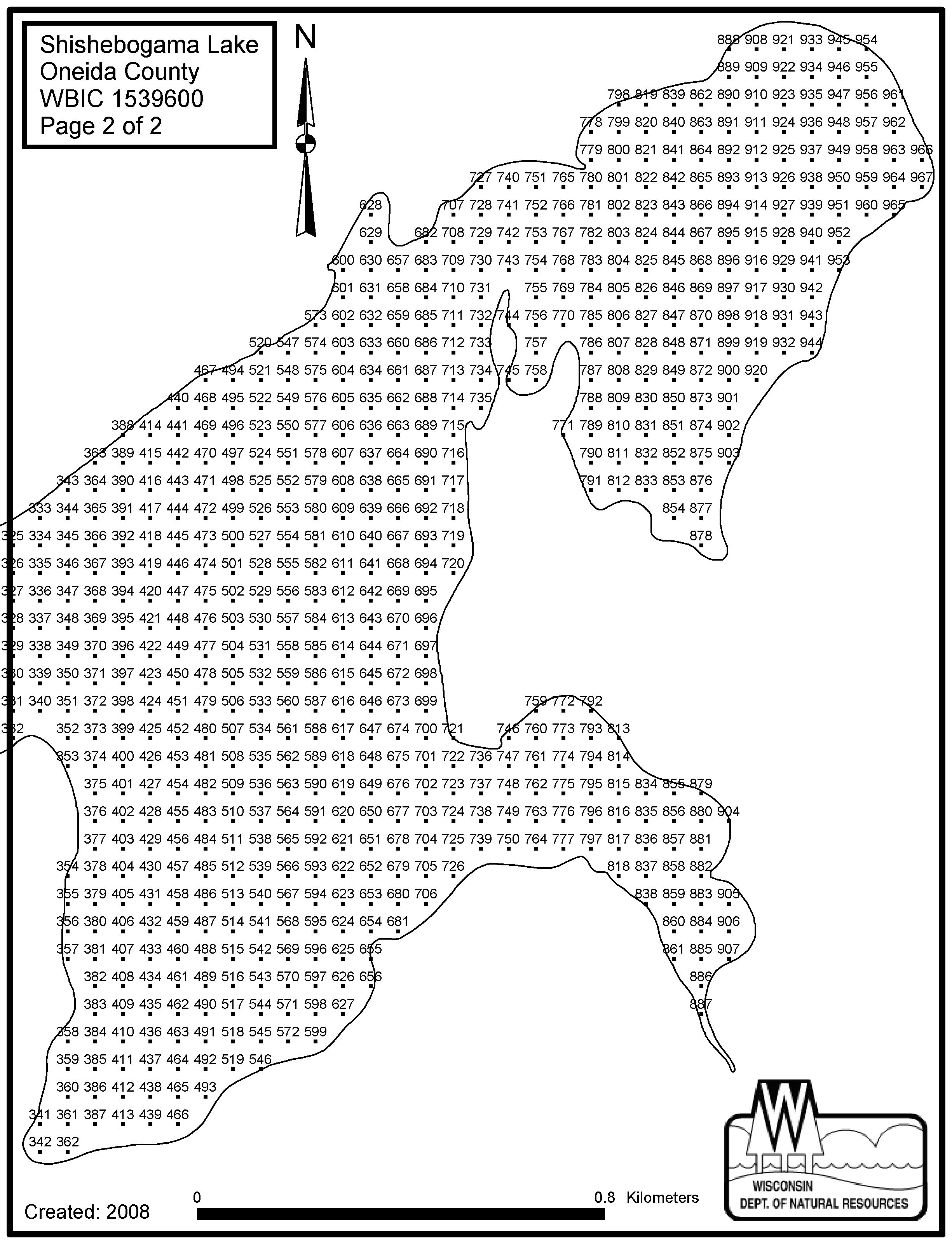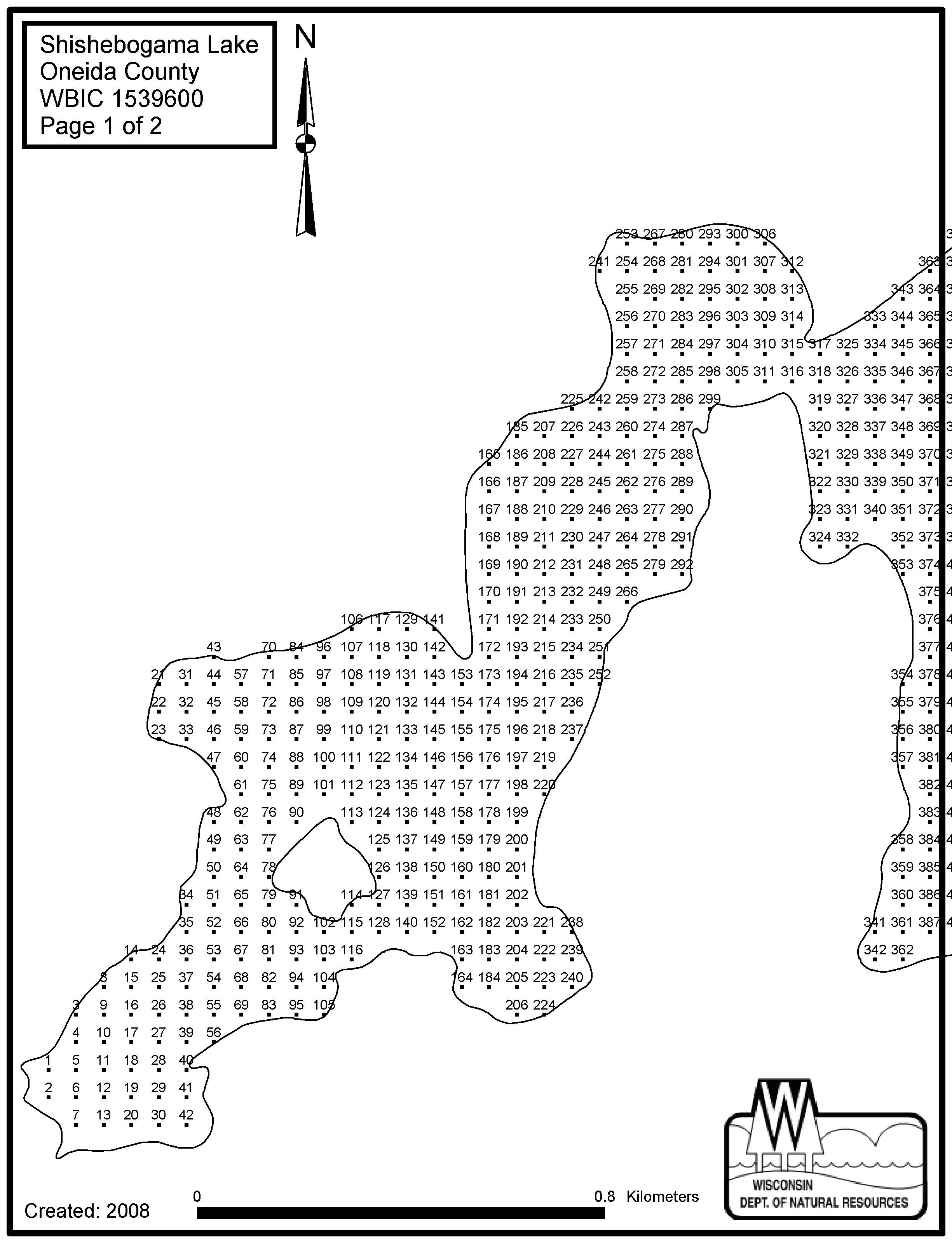 Shishebogama Lake, Oneida County - Aquatic Plant Sampling Map (2)(54 mpts)