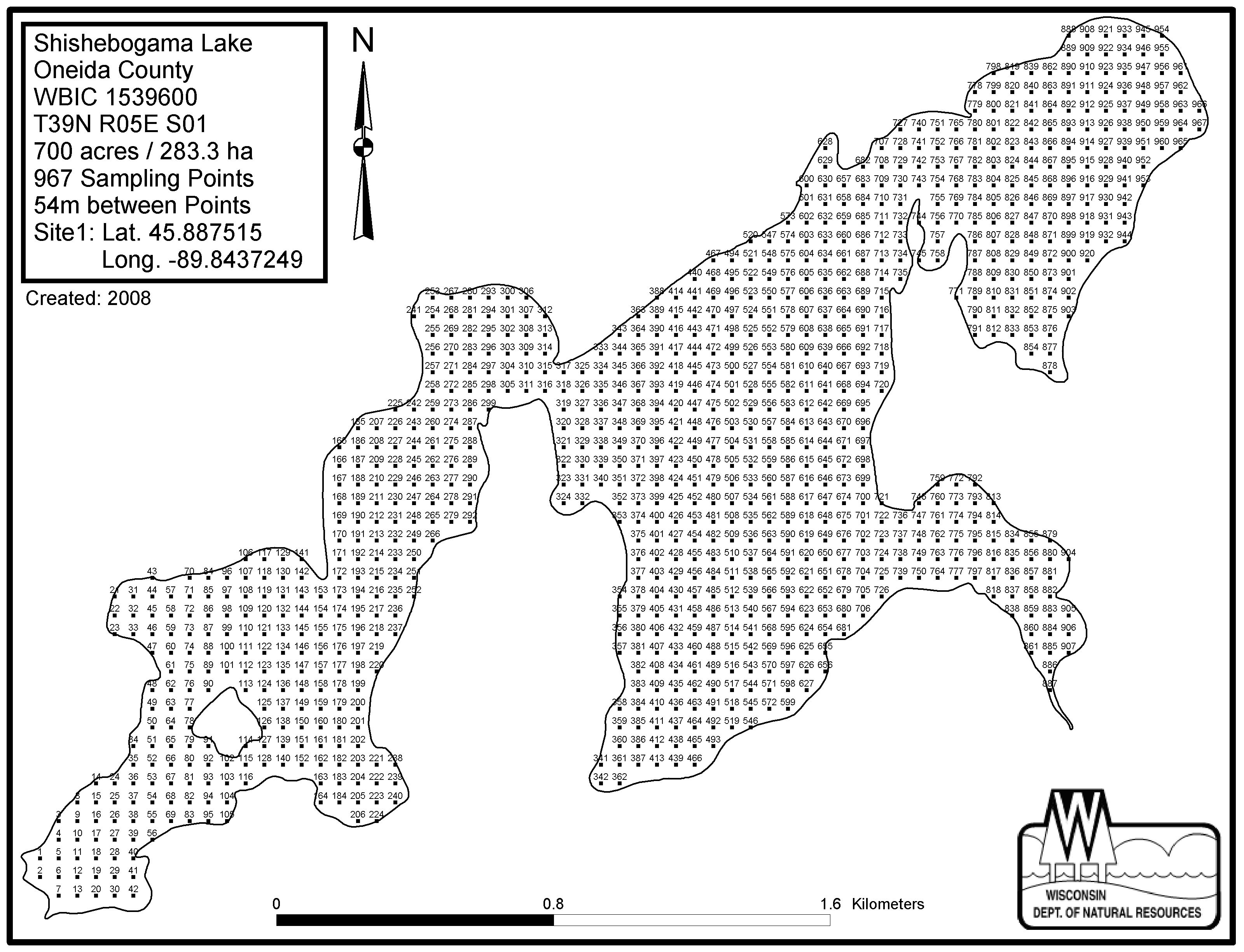 Shishebogama Lake, Oneida County - Aquatic Plant Sampling Map (54 mpts)