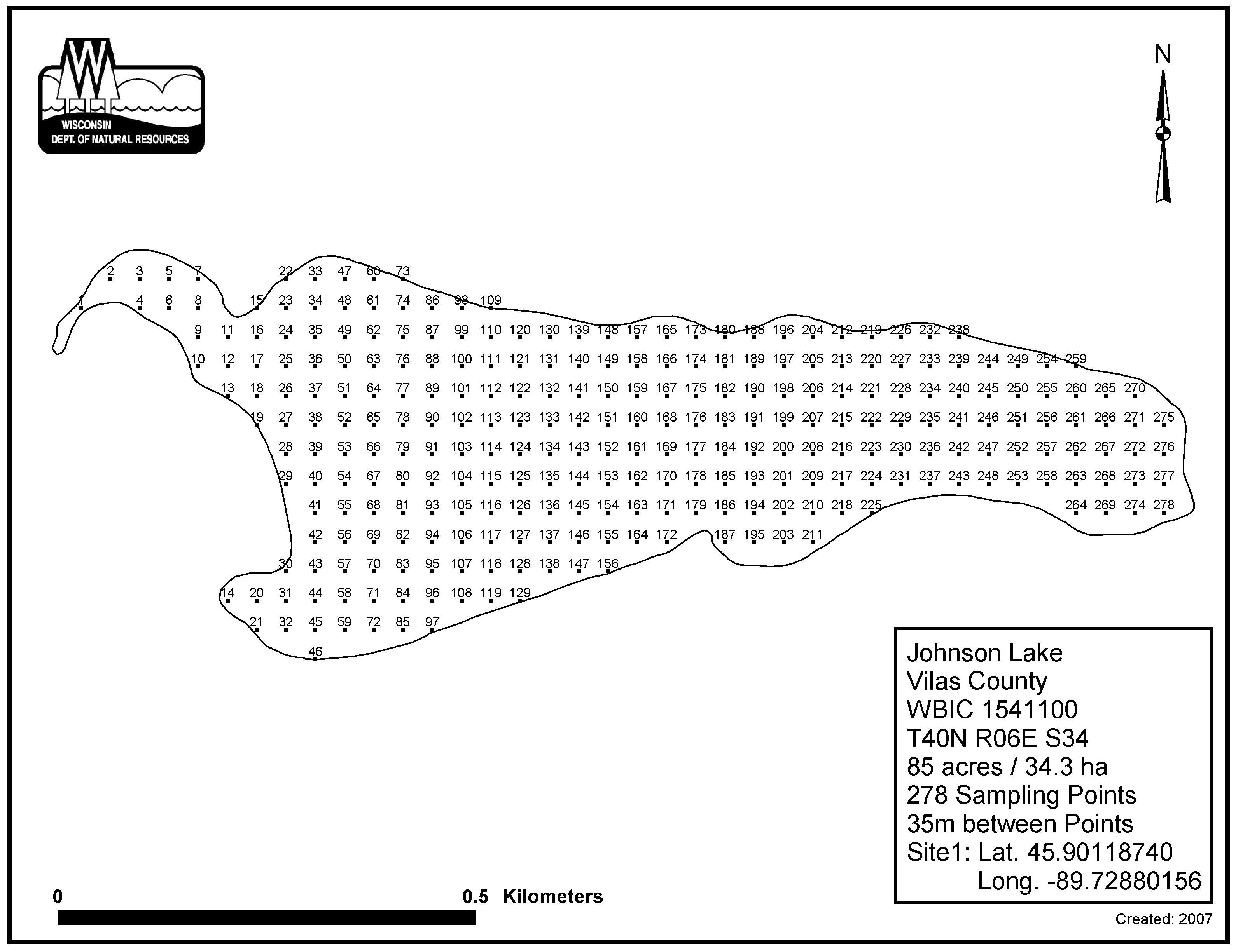 Johnson Lake, Vilas County - Aquatic Plant Sampling Map (35 mpts)