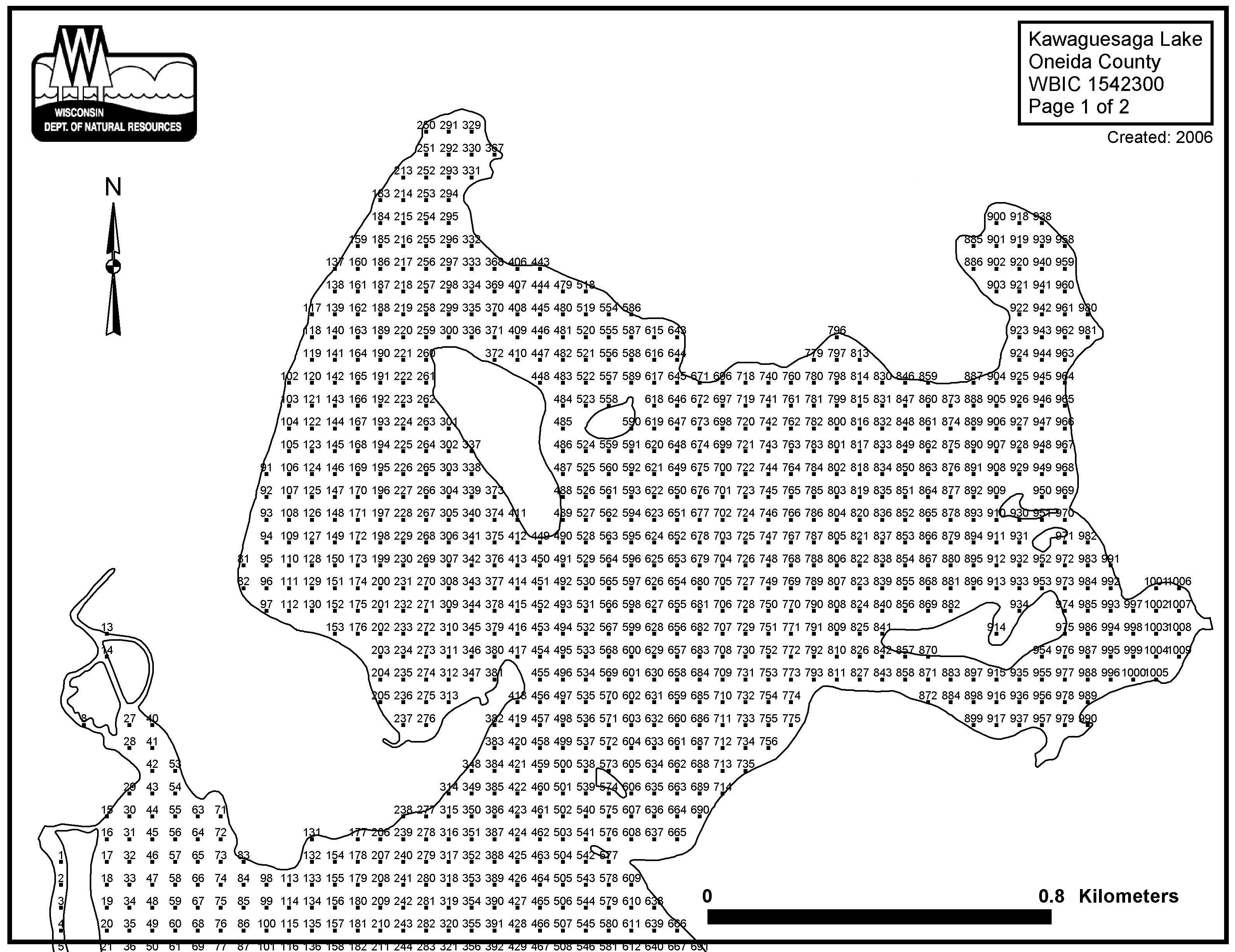 Kawaguesaga Lake, Oneida County - Aquatic Plant Sampling Map (2)(53 mpts)