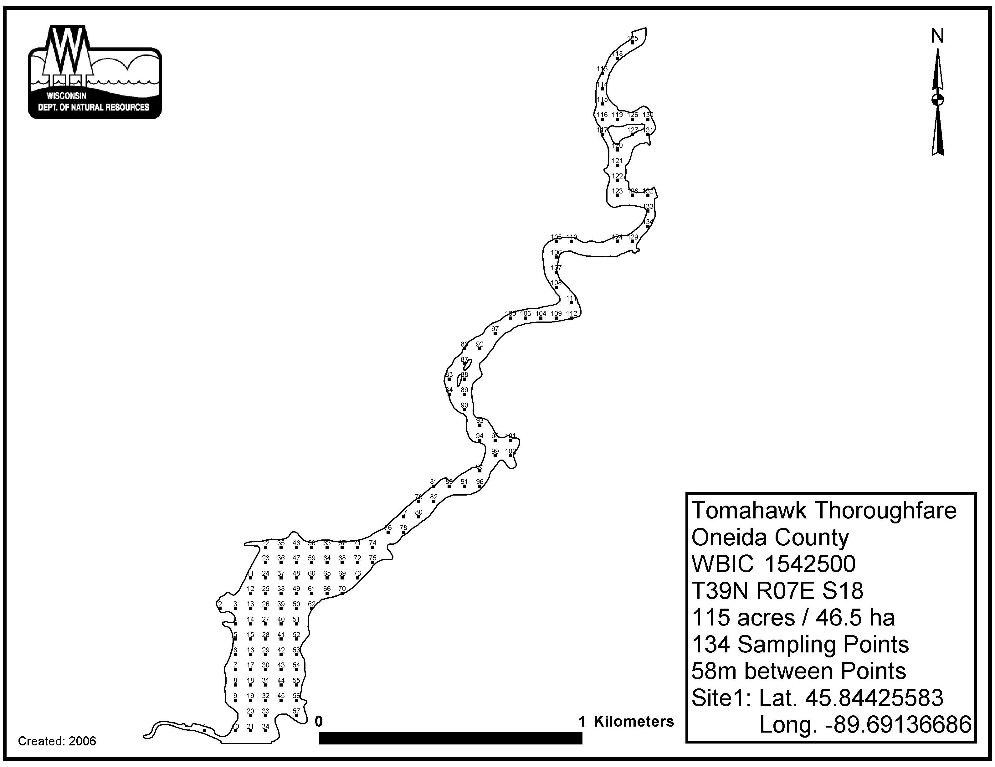 Tomahawk Thoroughfare, Oneida County - Aquatic Plant Sampling Map (58 mpts)