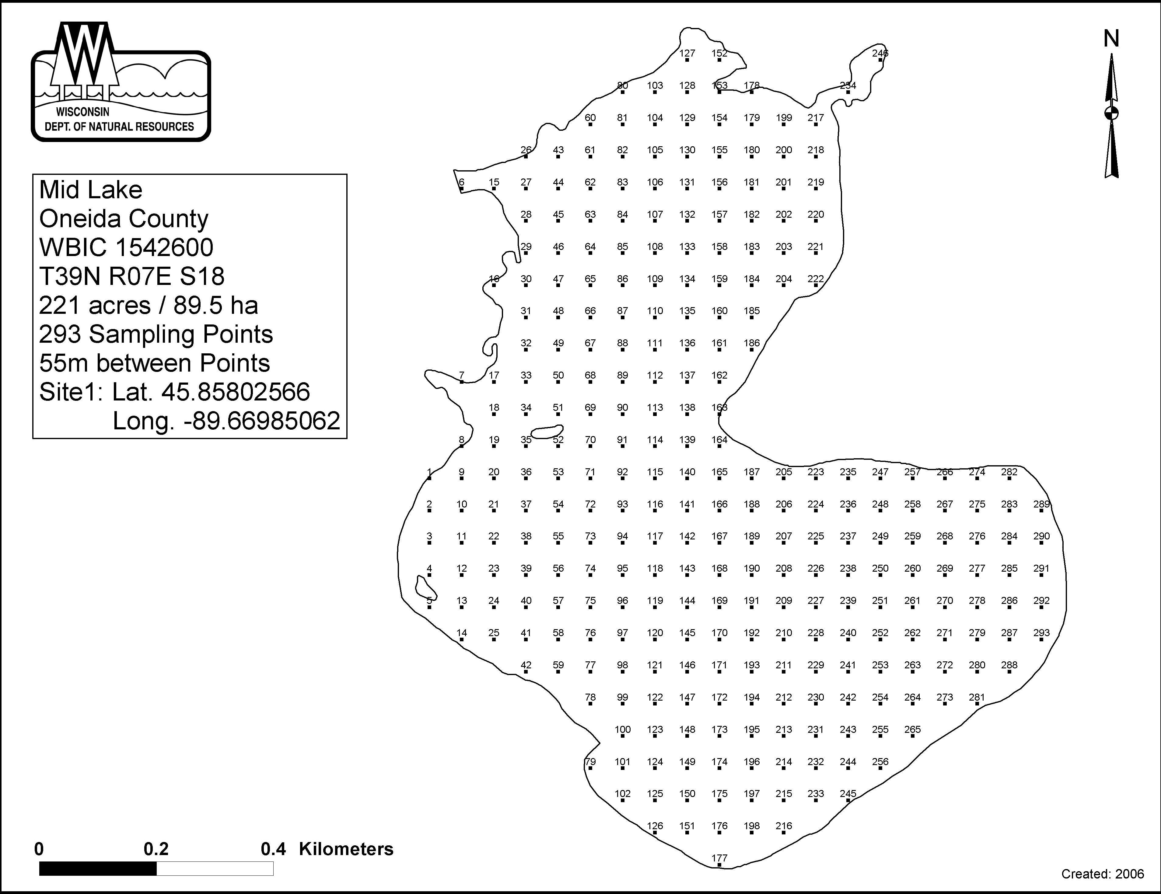 Mid Lake, Oneida County - Aquatic Plant Sampling Map (55 mpts)