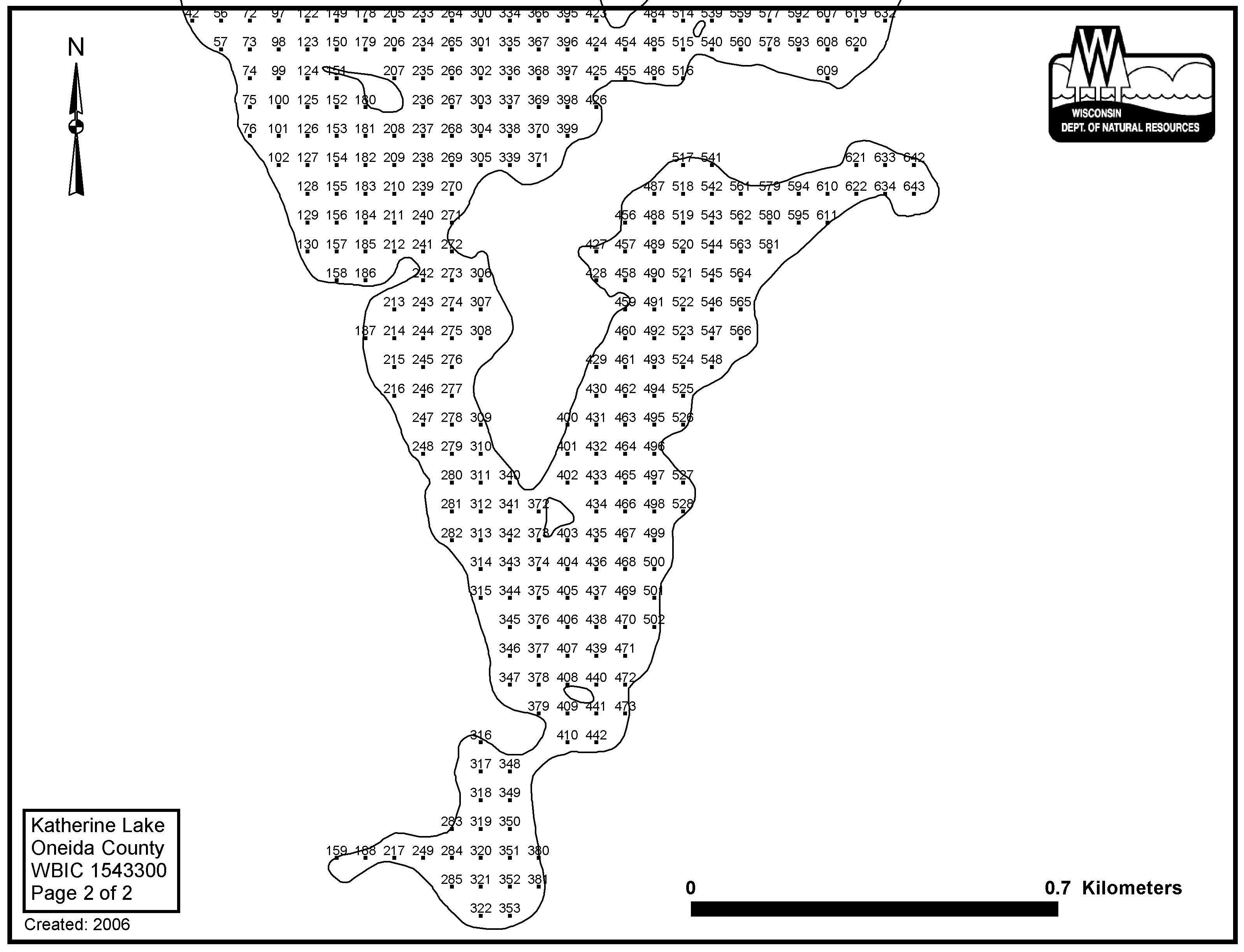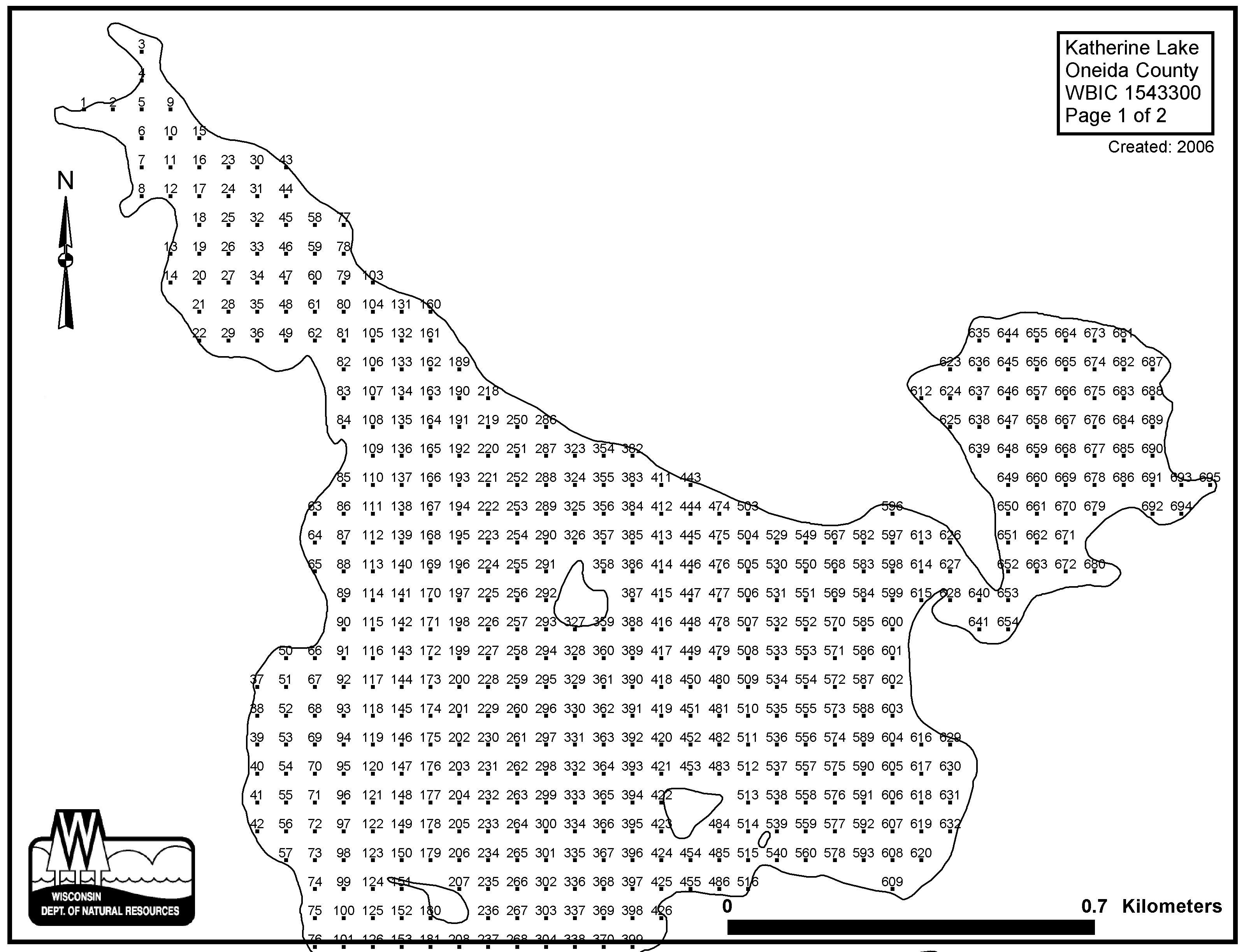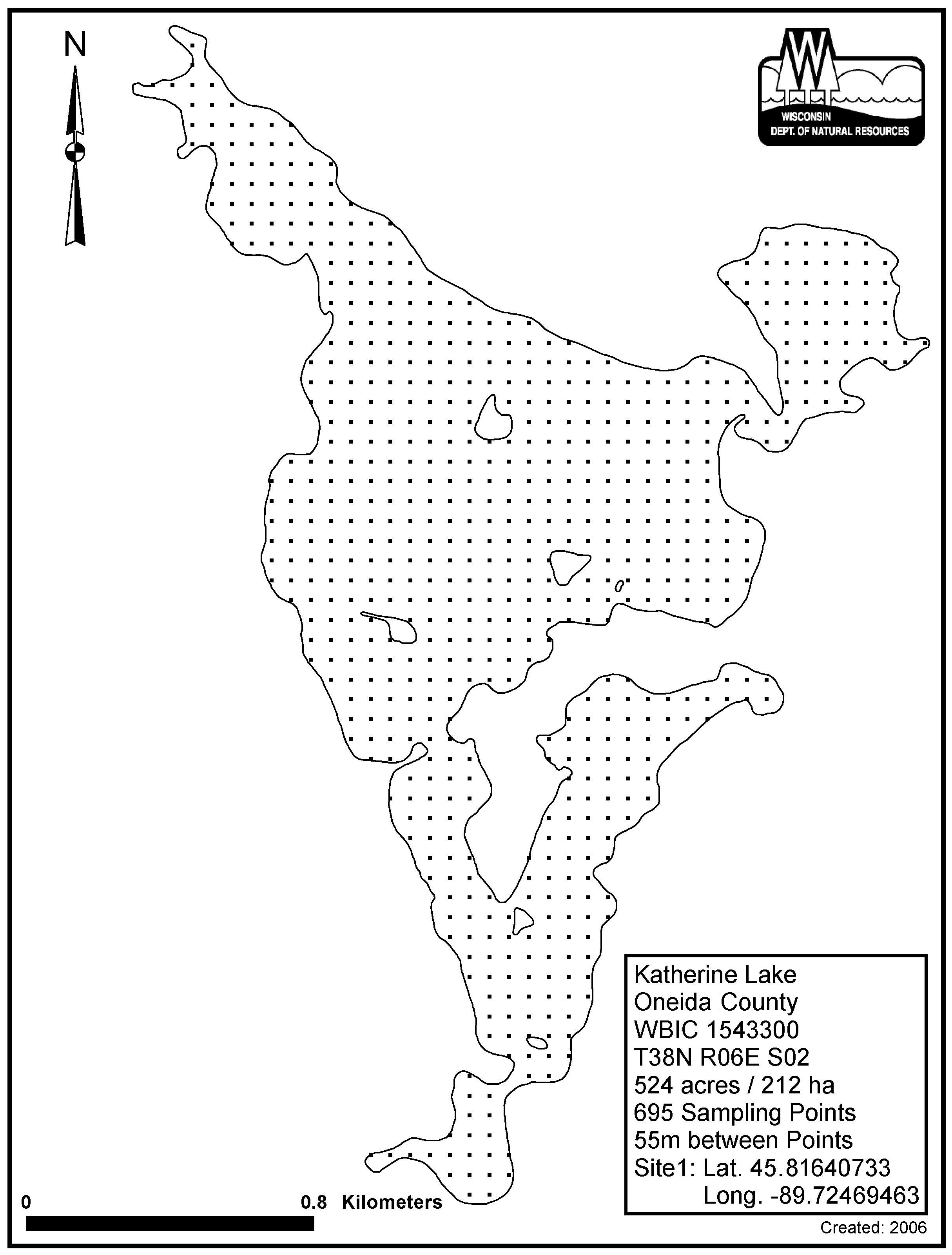 Katherine Lake, Oneida County - Aquatic Plant Sampling Map (2)(55 mpts)