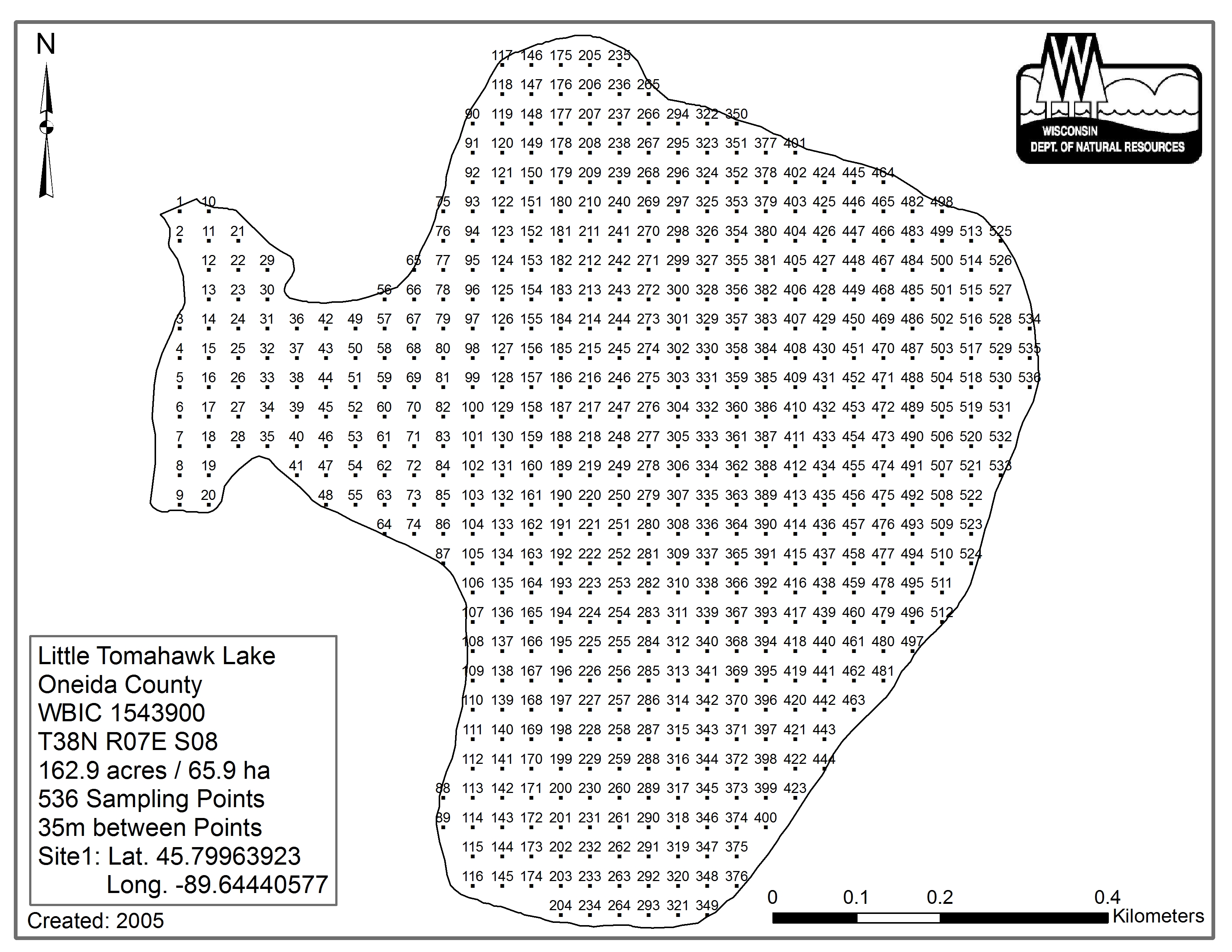 Little Tomahawk Lake, Oneida County - Aquatic Plant Sampling Map (35 mpts)