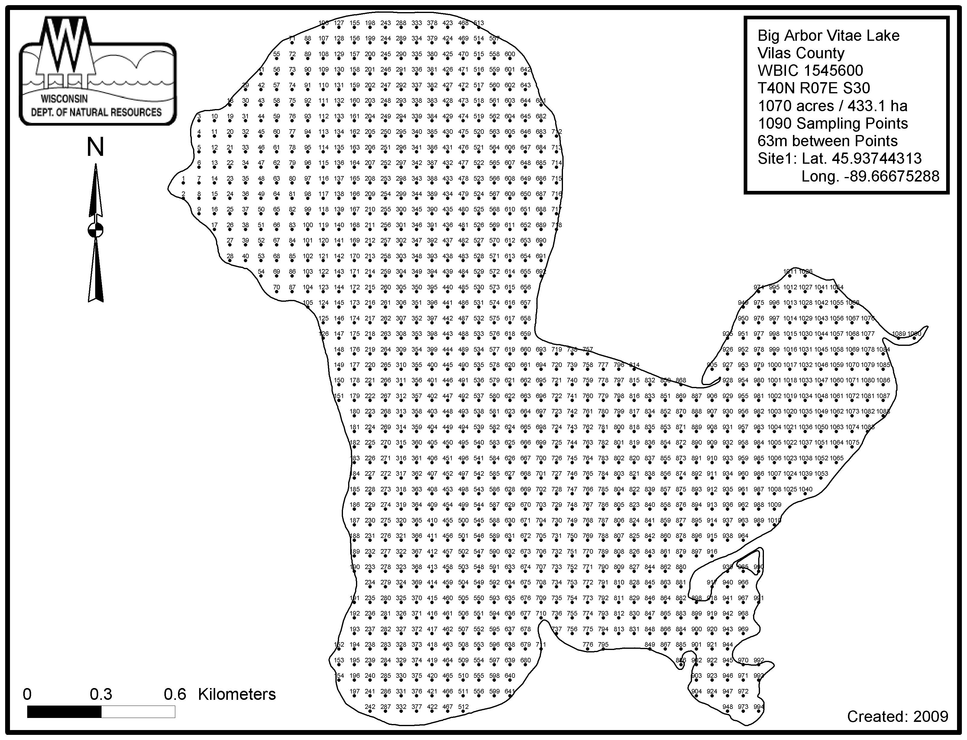Big Arbor Vitae Lake, Vilas County - Aquatic Plant Sampling Map (63 mpts)
