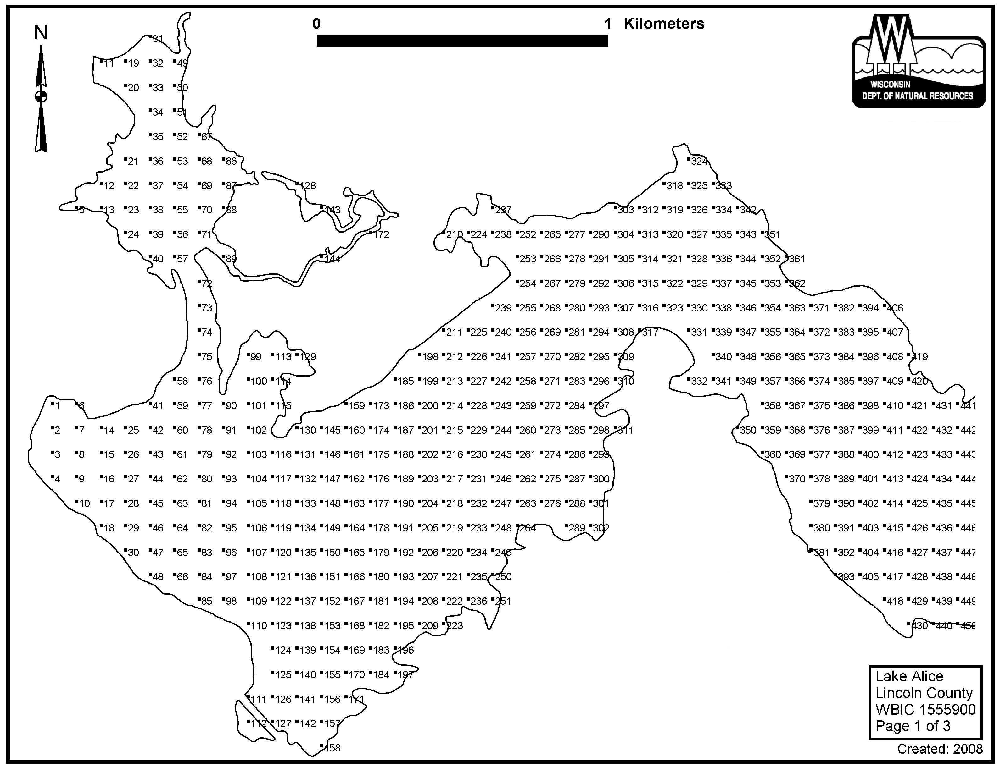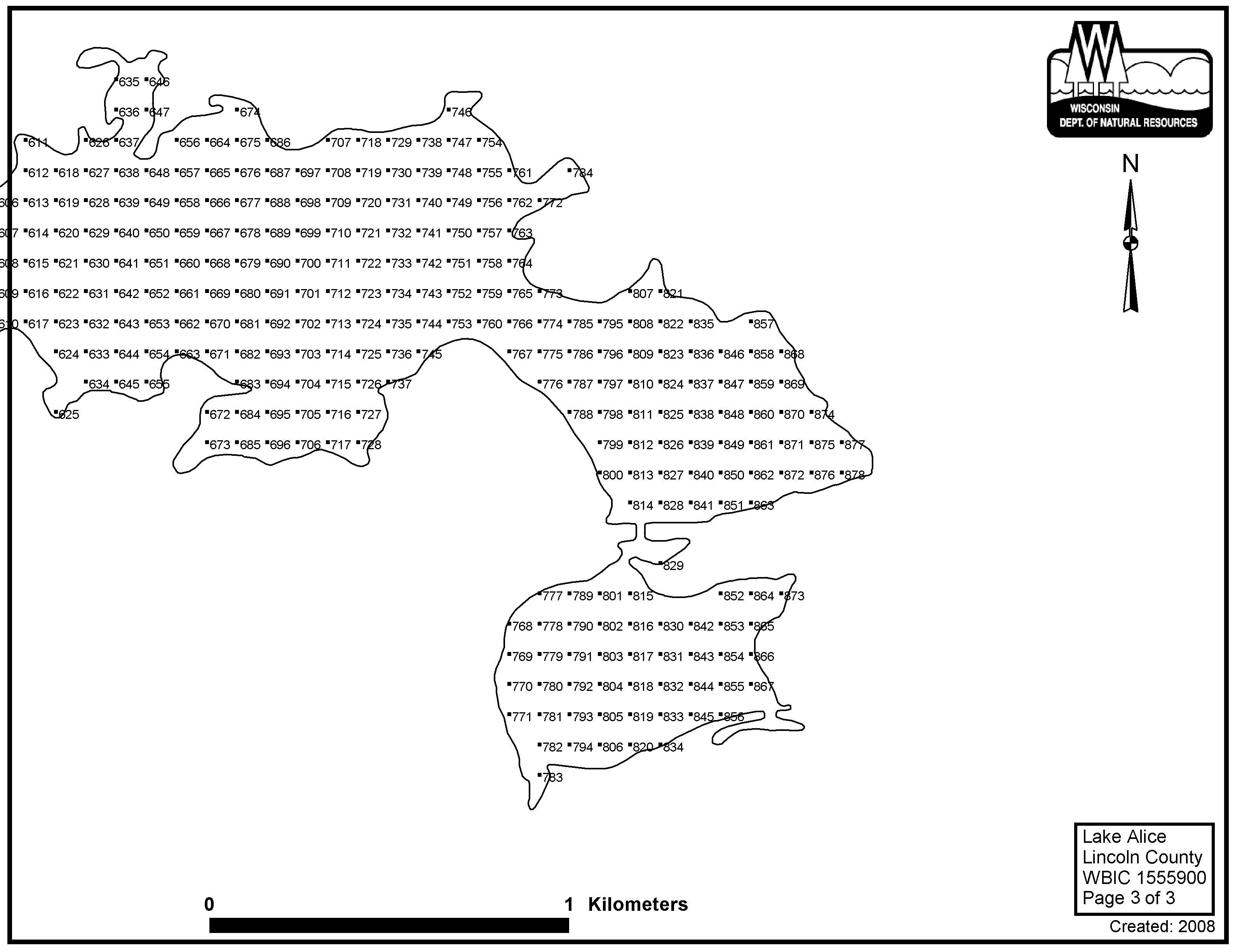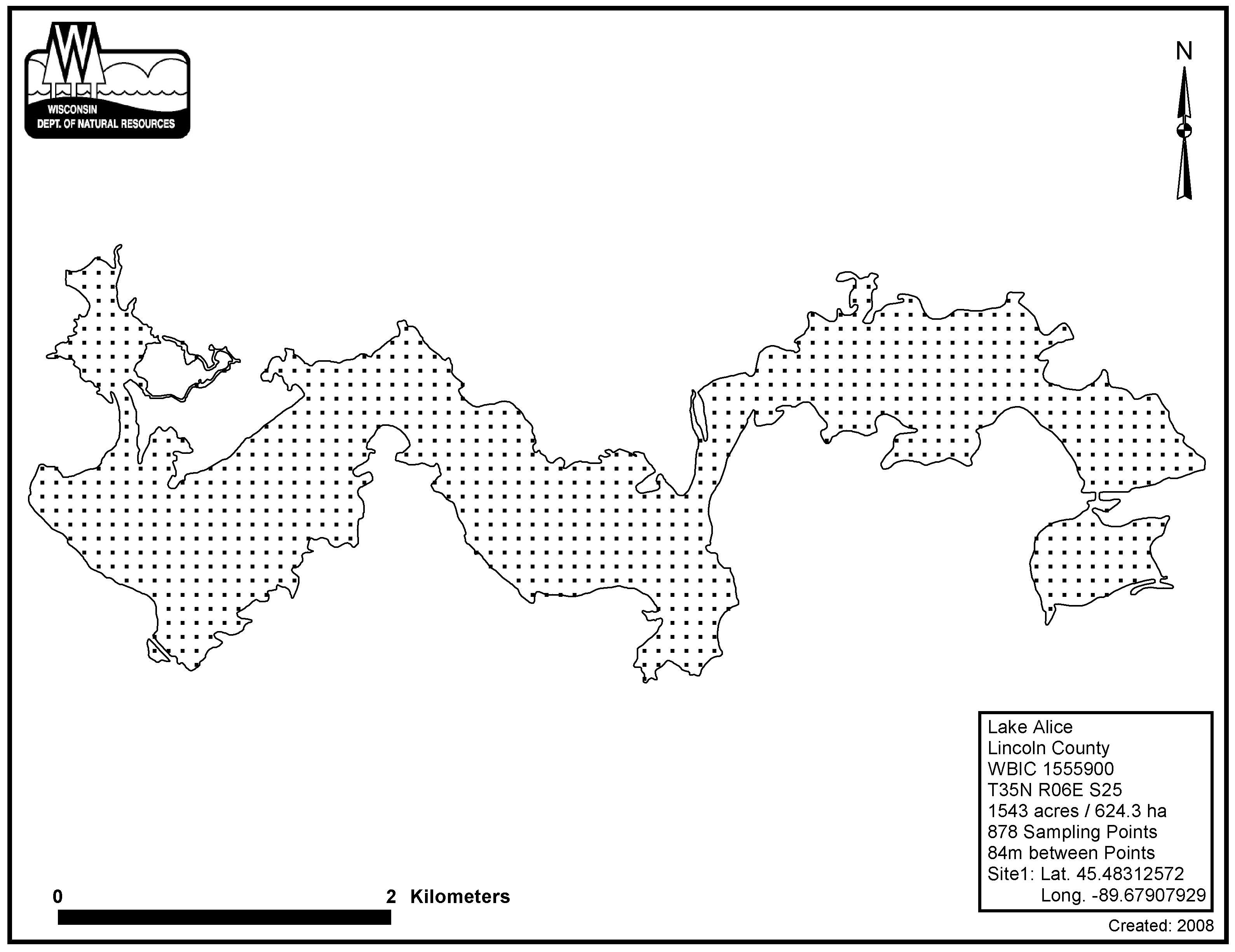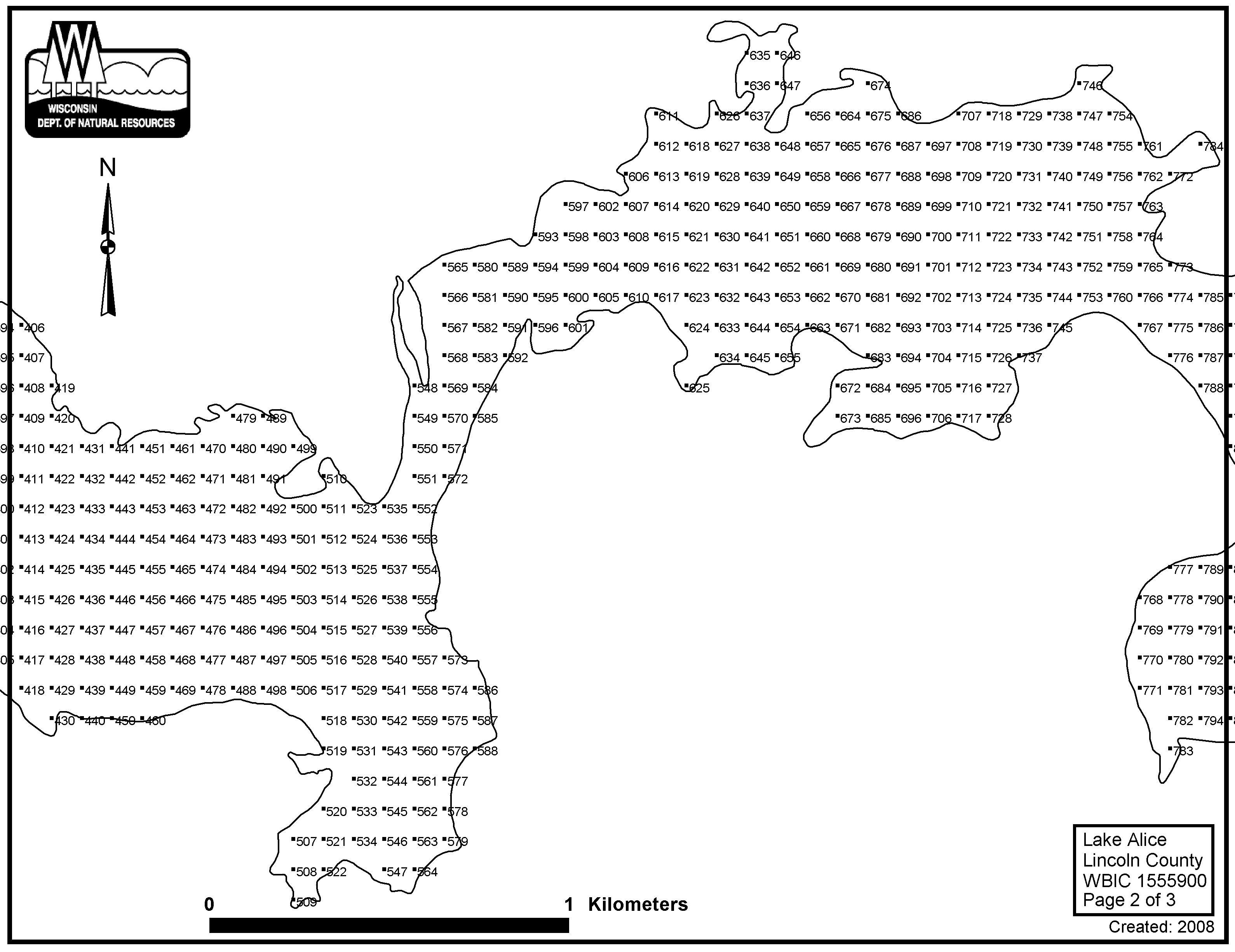 Lake Alice, Lincoln County - Aquatic Plant Sampling Map (3)(84 mpts)