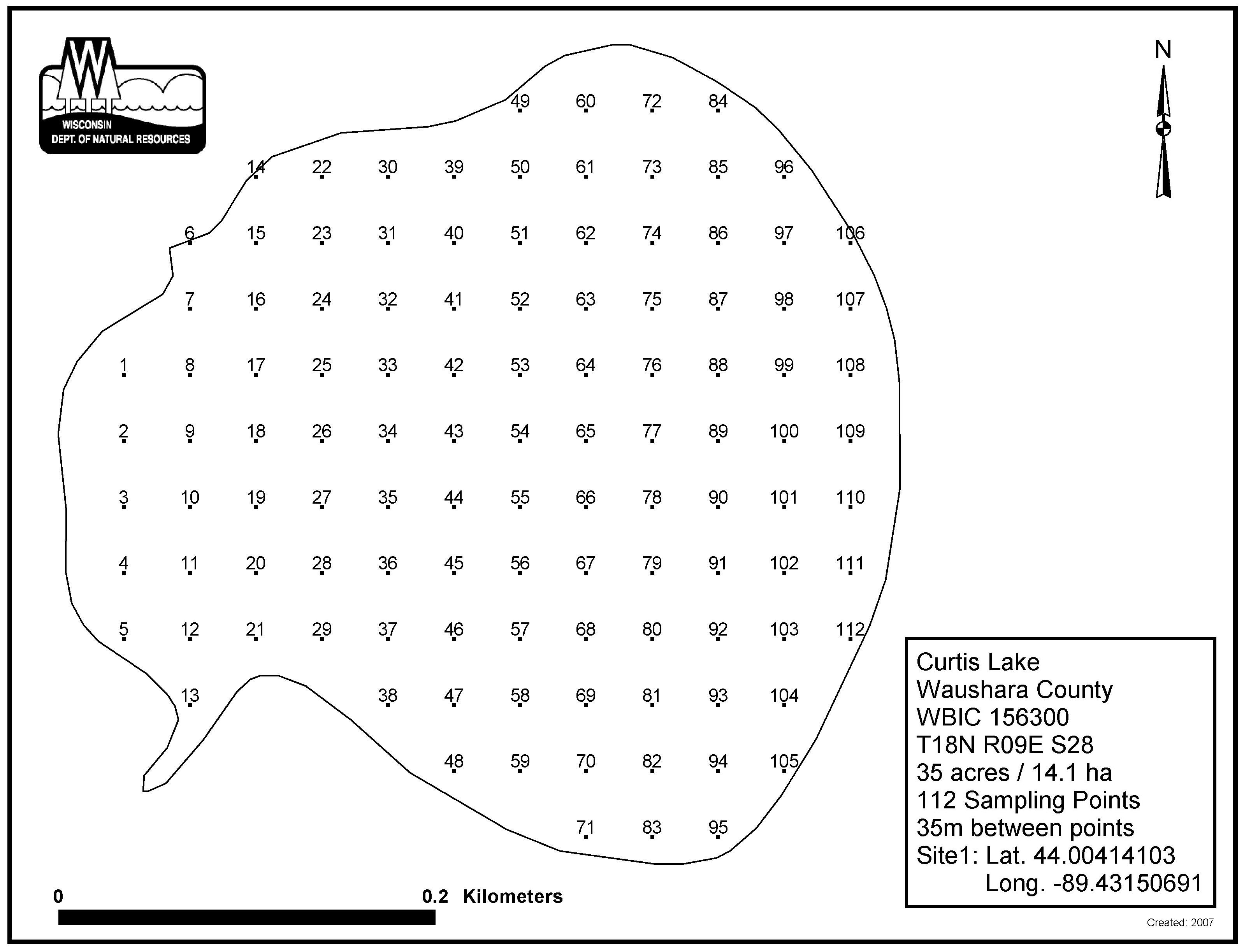 Curtis Lake, Waushara County - Aquatic Plant Sampling Map (35 mpts)