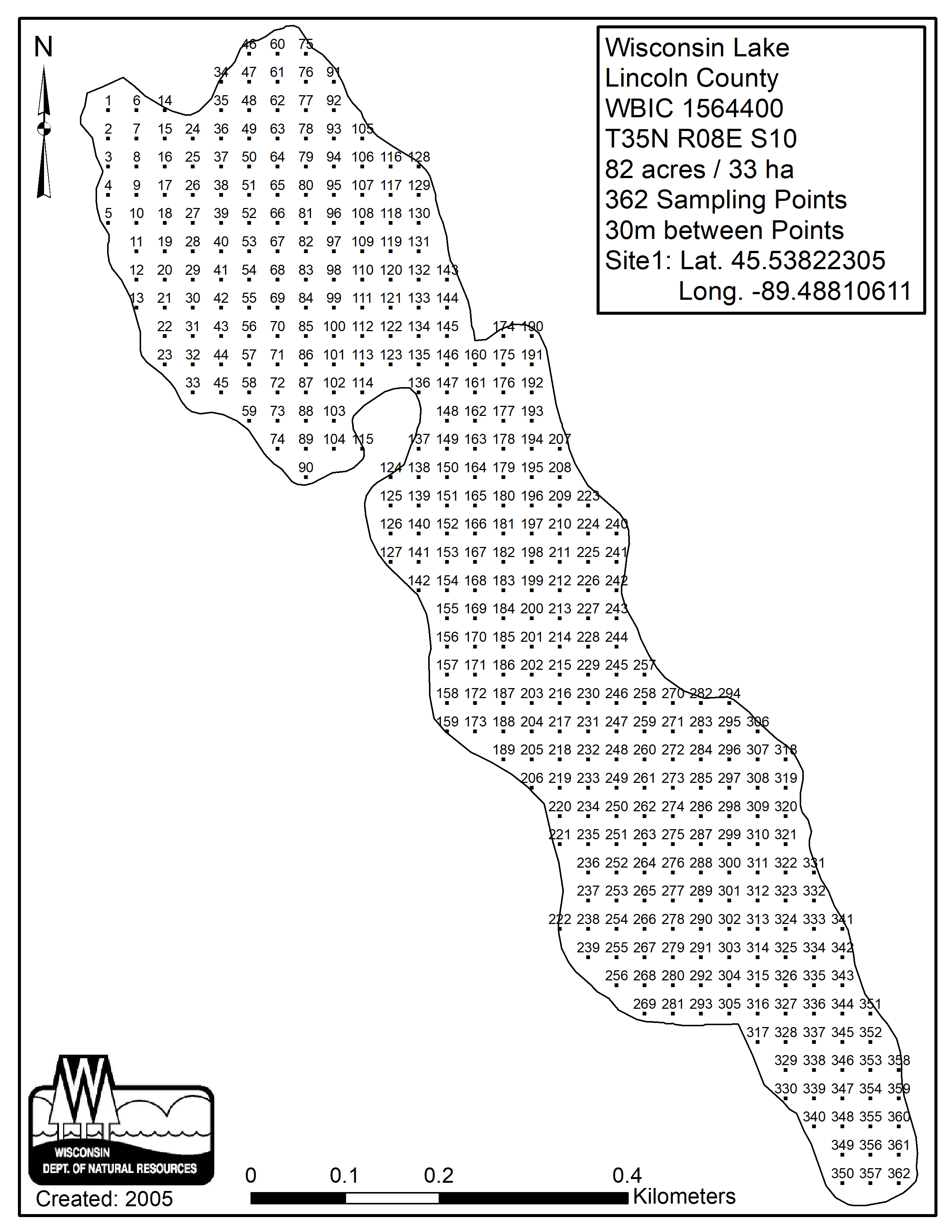 Wisconsin Lake, Lincoln County - Aquatic Plant Sampling Map (30 mpts)