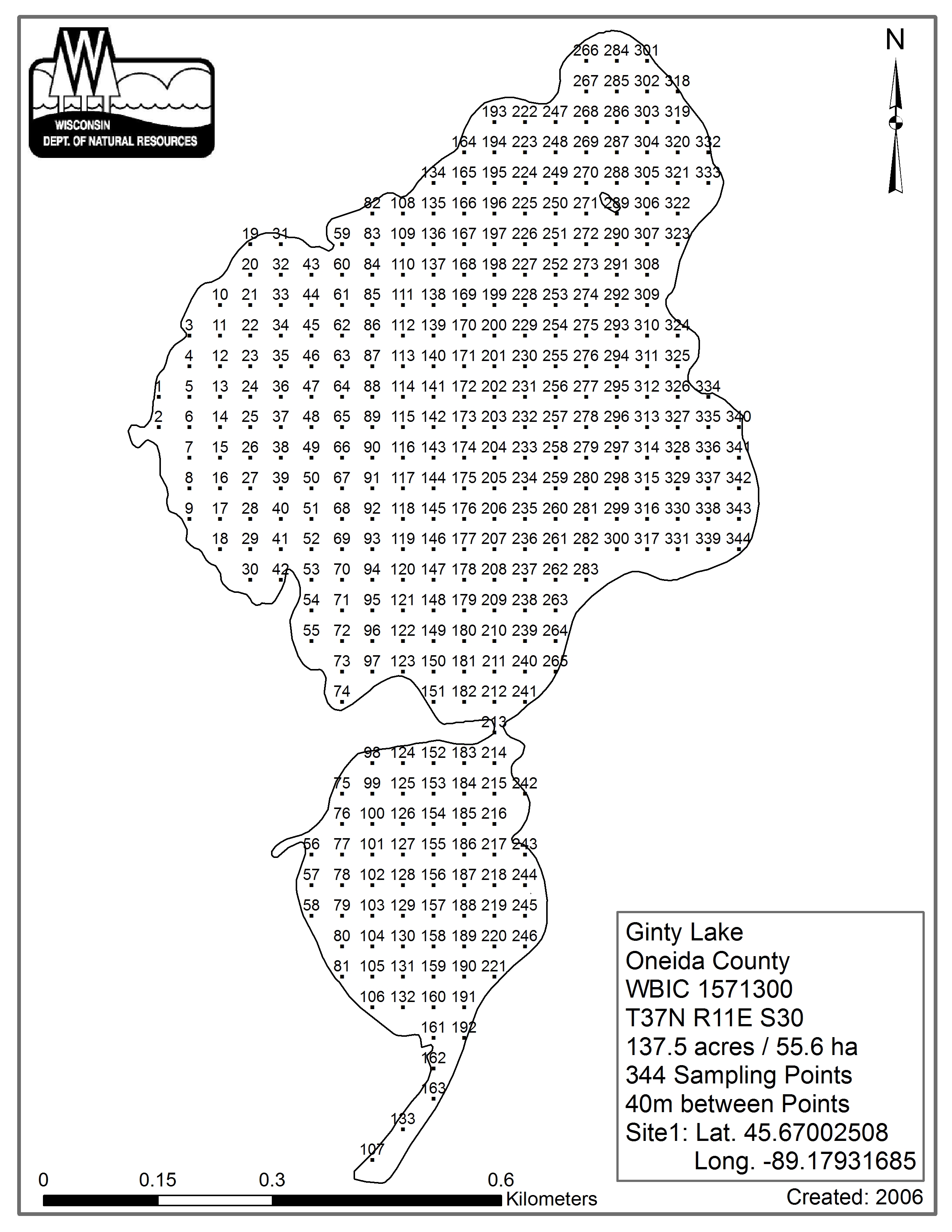 Ginty Lake, Oneida County - Aquatic Plant Sampling Map (40 mpts)