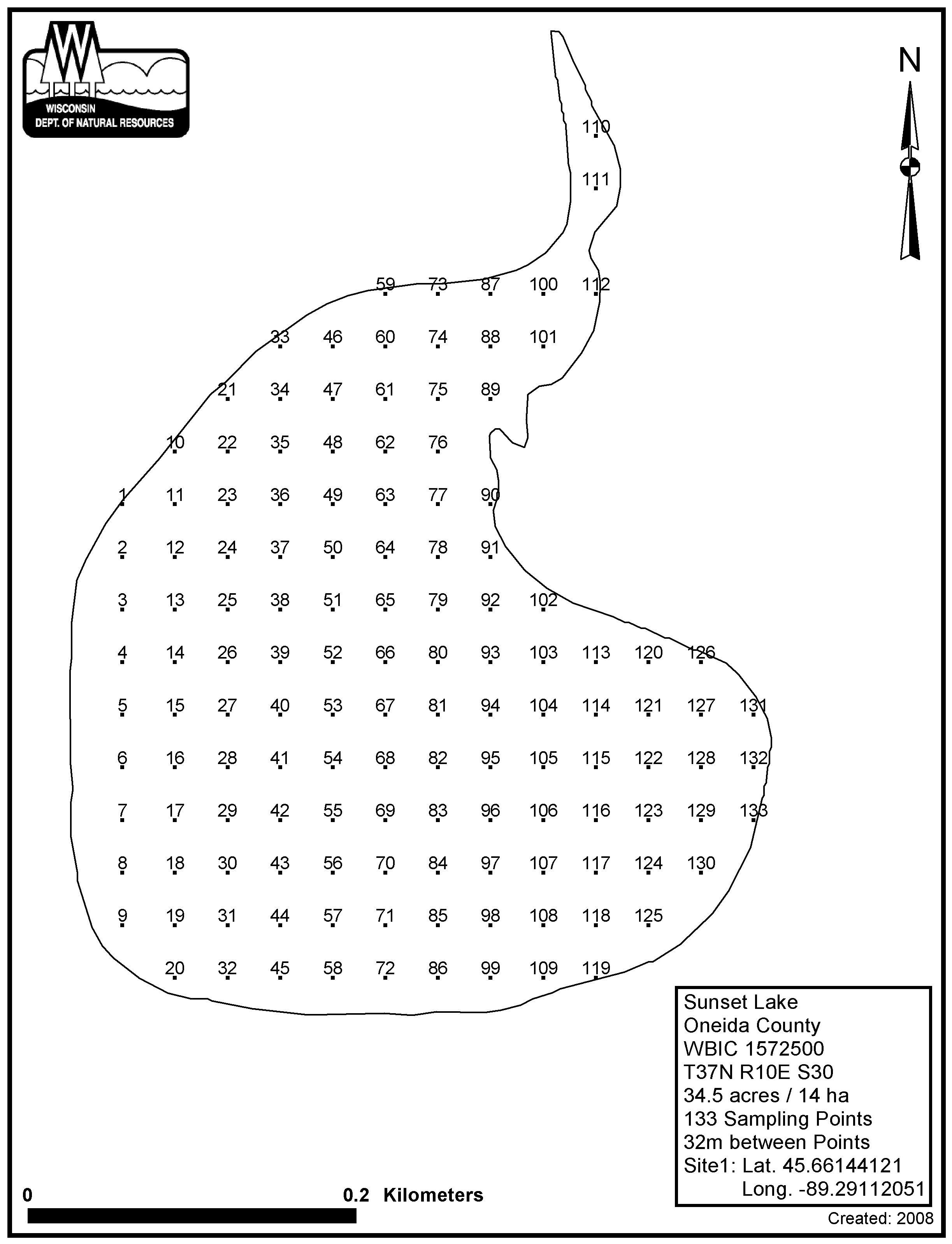 Sunset Lake, Oneida County - Aquatic Plant Sampling Map (32 mpts)