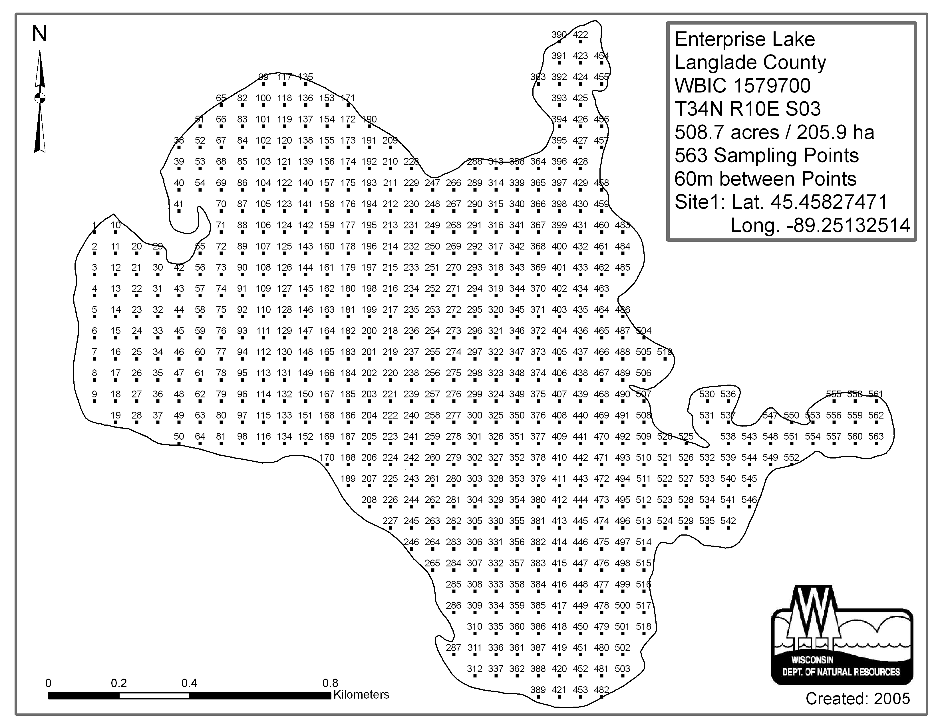 Enterprise Lake, Langlade County - Aquatic Plant Sampling Map (60 mpts)