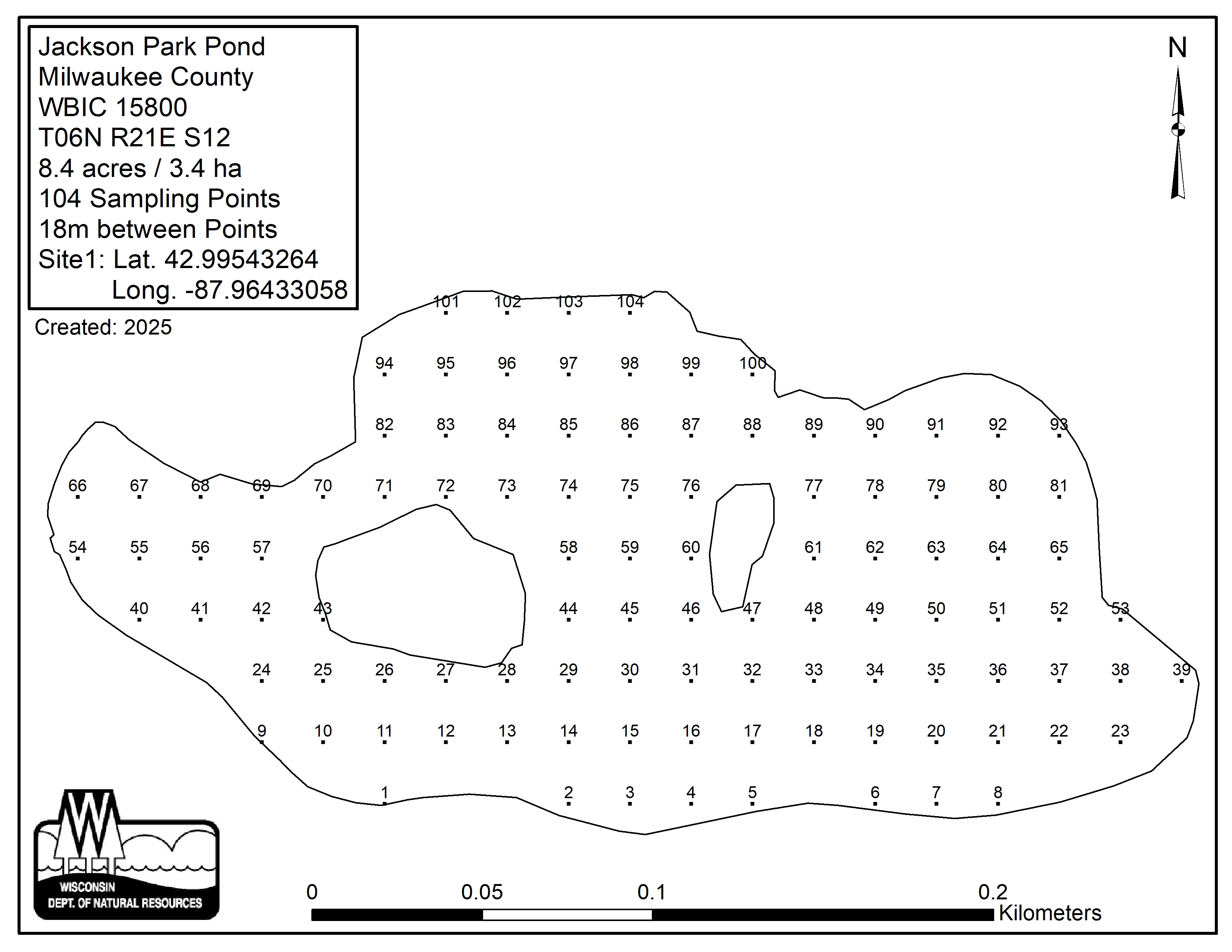 Jackson Park Pond, Milwaukee County - Aquatic Plant Sampling Map (18 mpts)
