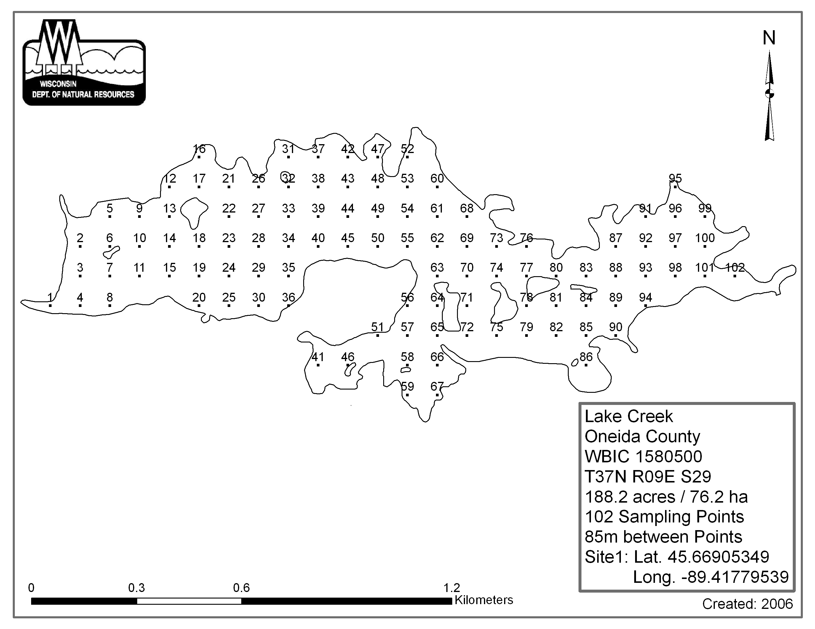 Lake Creek, Oneida County - Aquatic Plant Sampling Map (85 mpts)