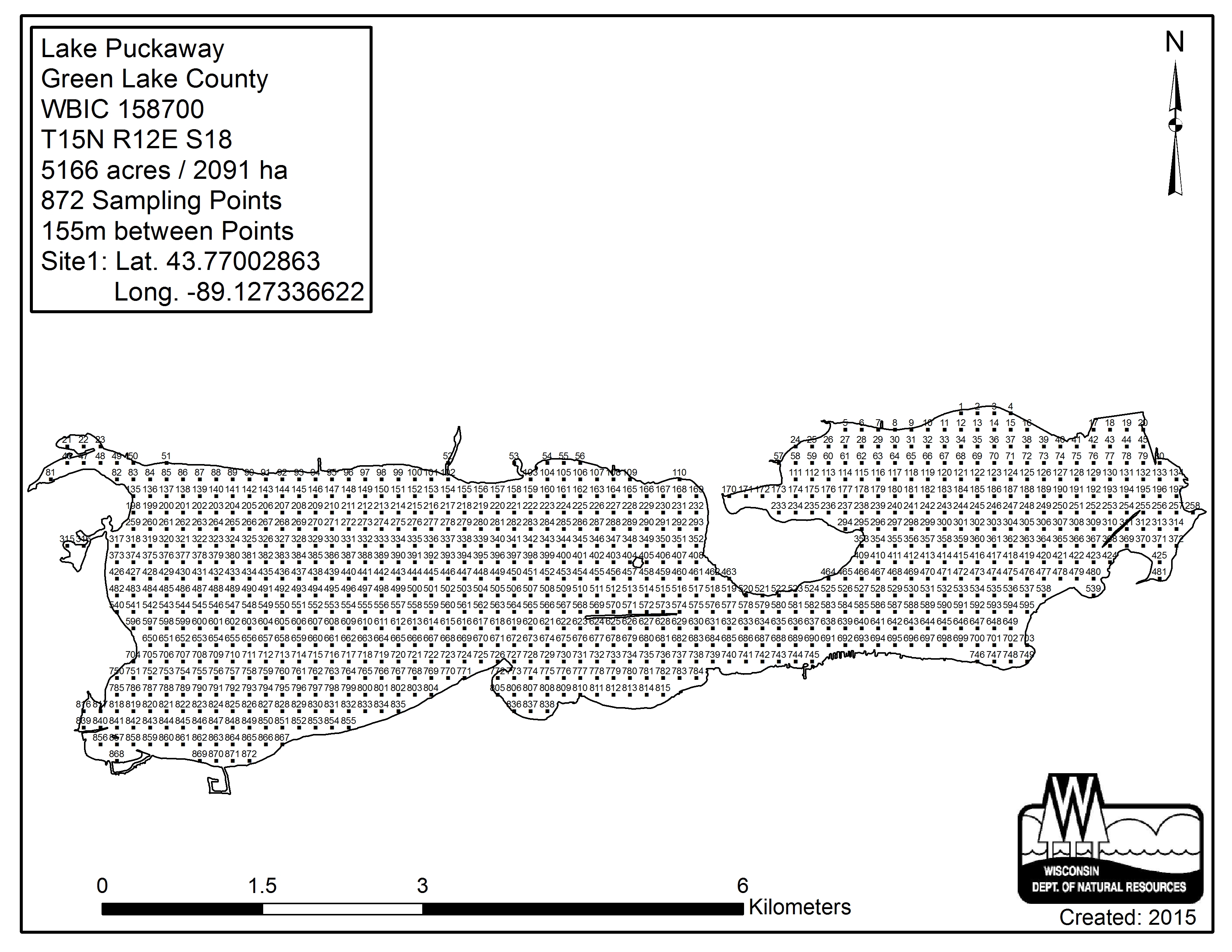 Lake Puckaway, Green Lake County - Aquatic Plant Sampling Map (155 mpts)