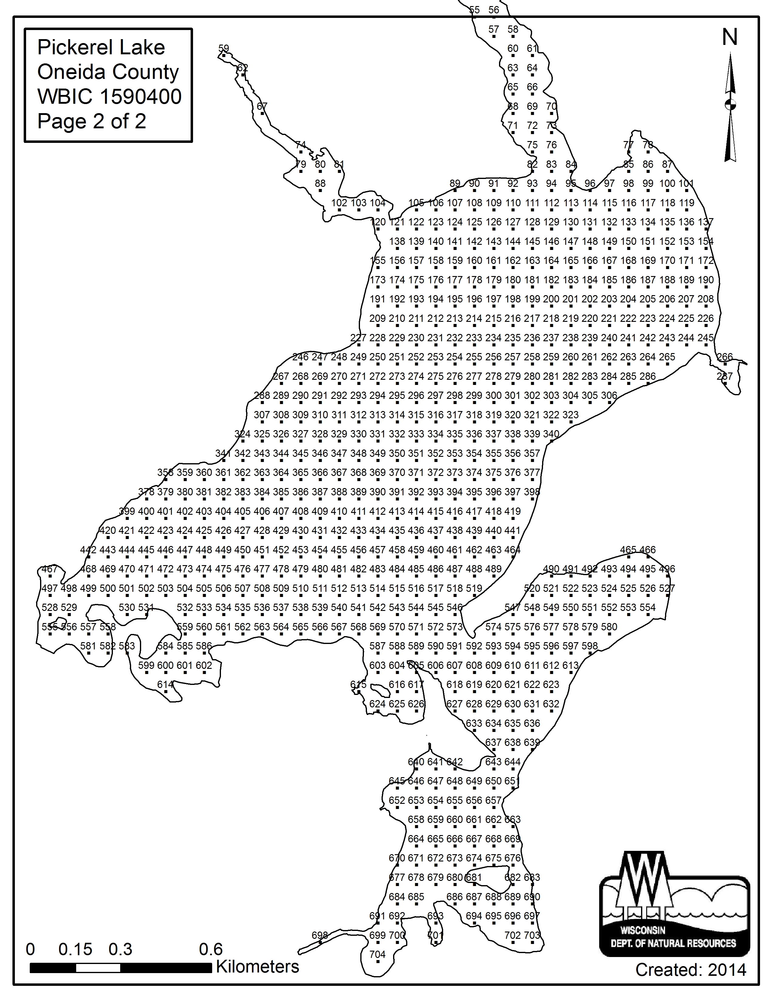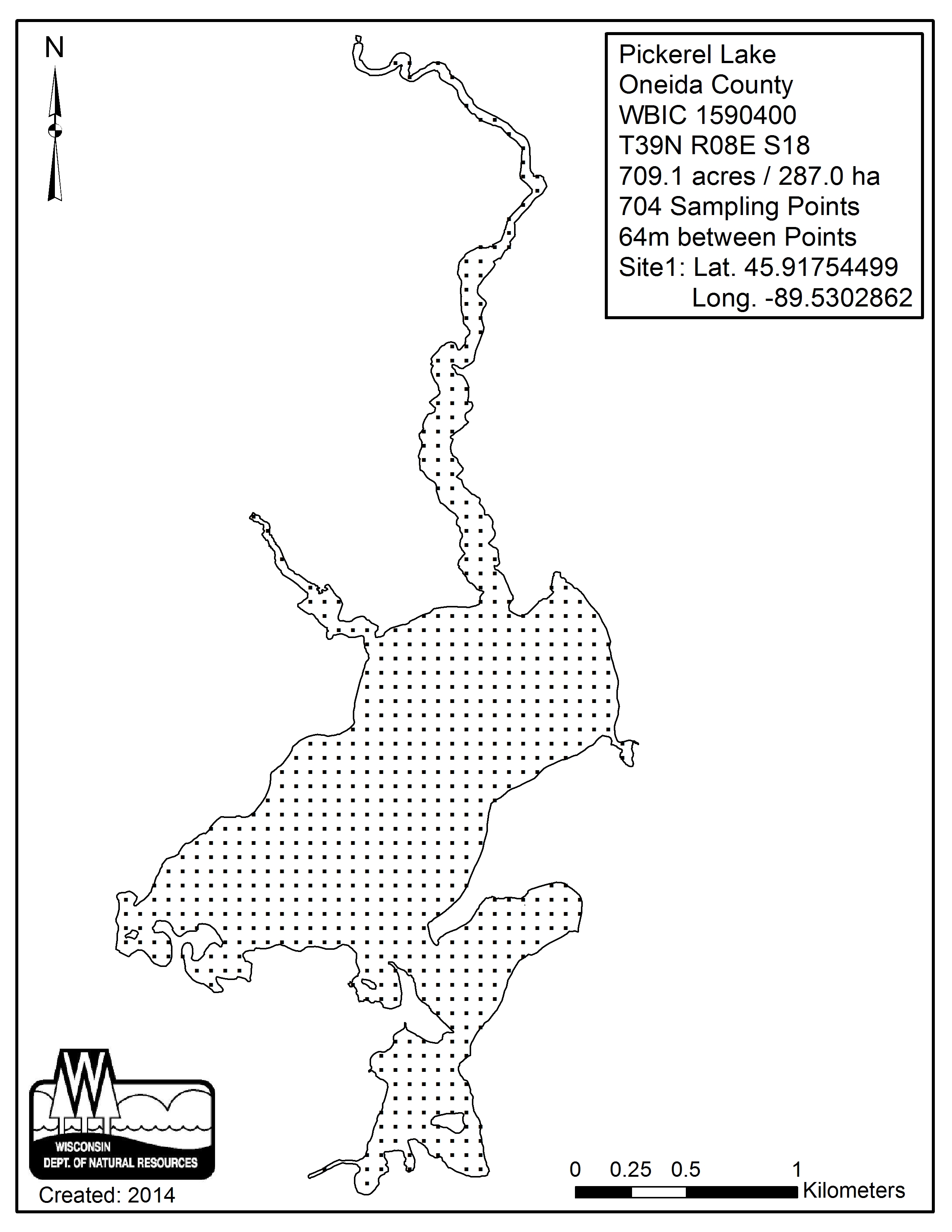Pickerel Lake, Oneida County - Aquatic Plant Sampling Map (2)(64 mpts)