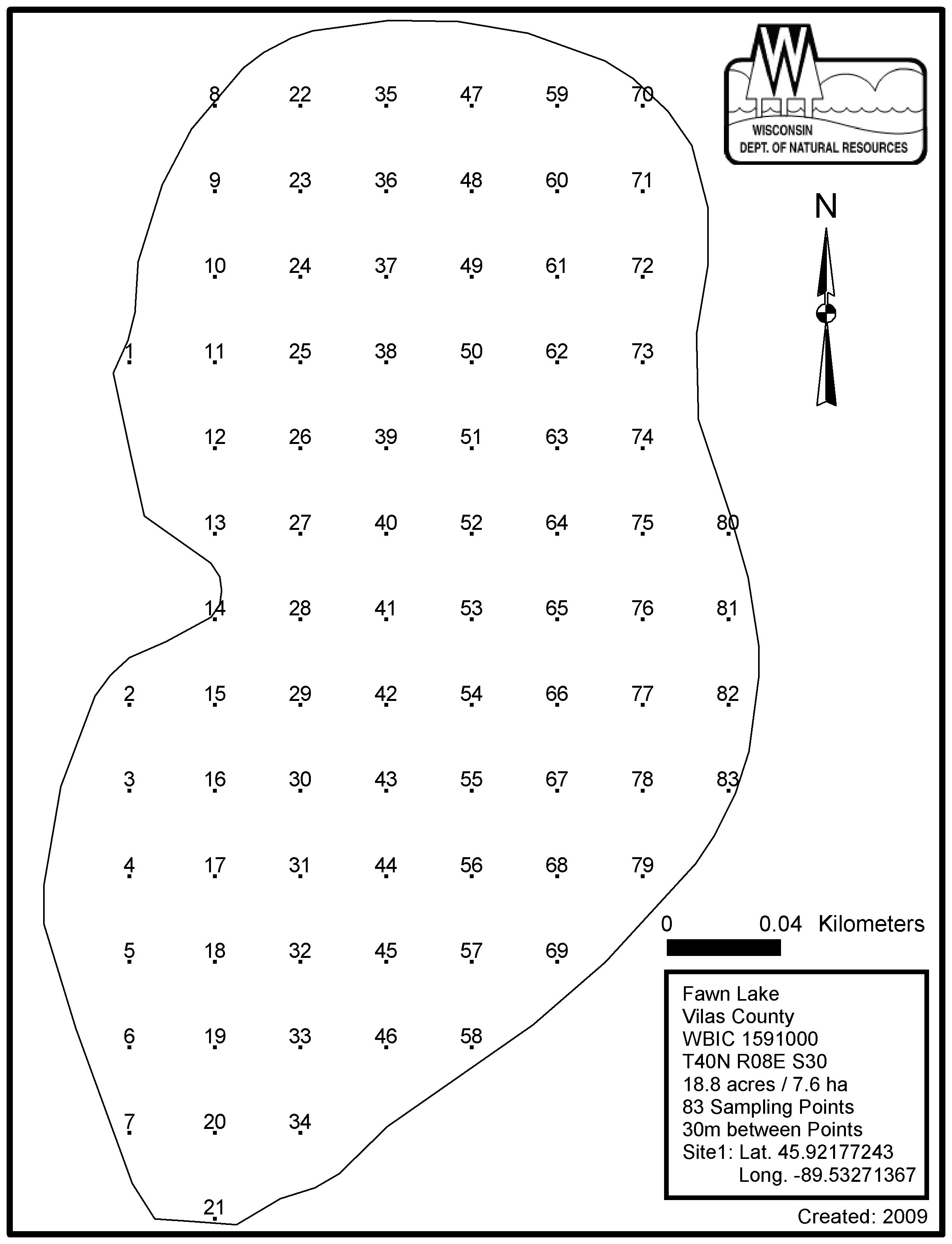 Fawn Lake, Vilas County (1591000) - Aquatic Plant Sampling Map (30 mpts)