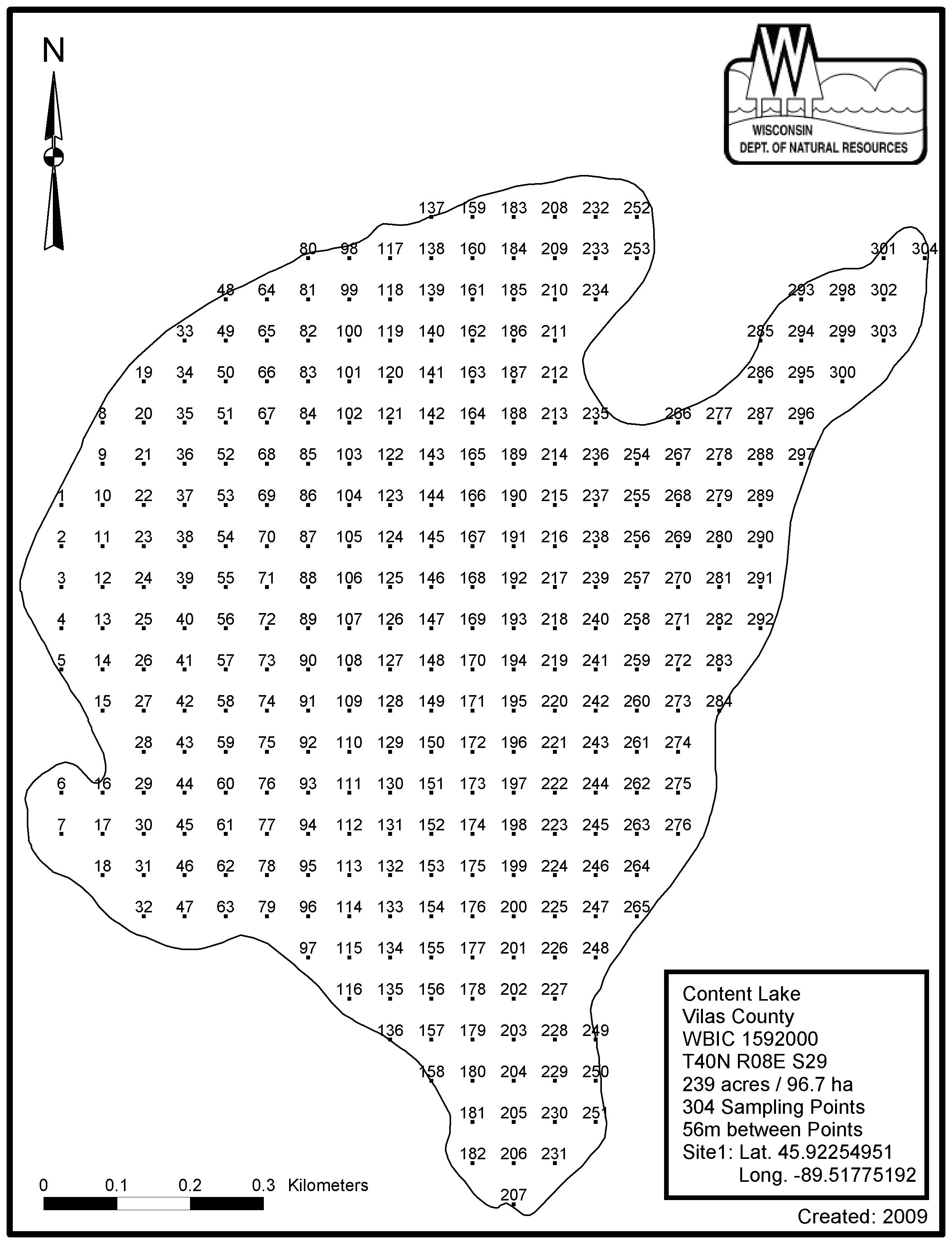 Content Lake, Vilas County - Aquatic Plant Sampling Map (56 mpts)