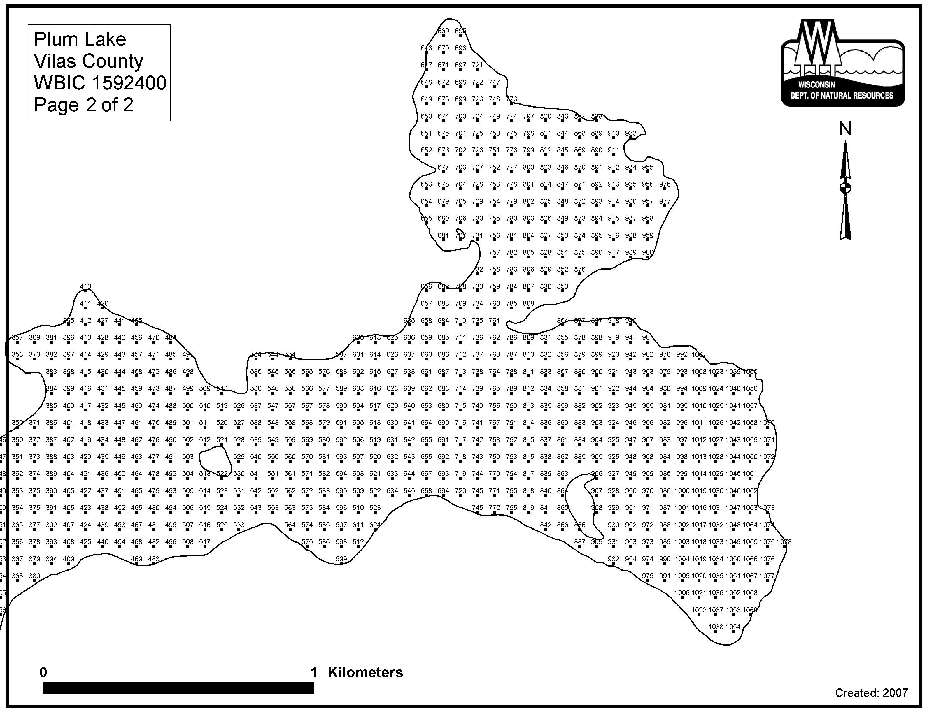 Plum Lake, Vilas County - Aquatic Plant Sampling Map (2)(63 mpts)