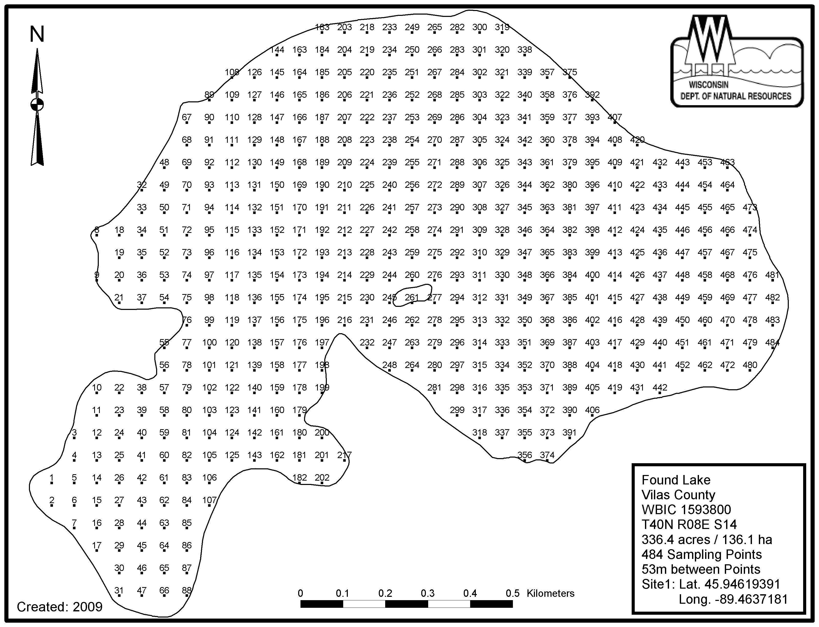 Found Lake, Vilas County - Aquatic Plant Sampling Map (53 mpts)