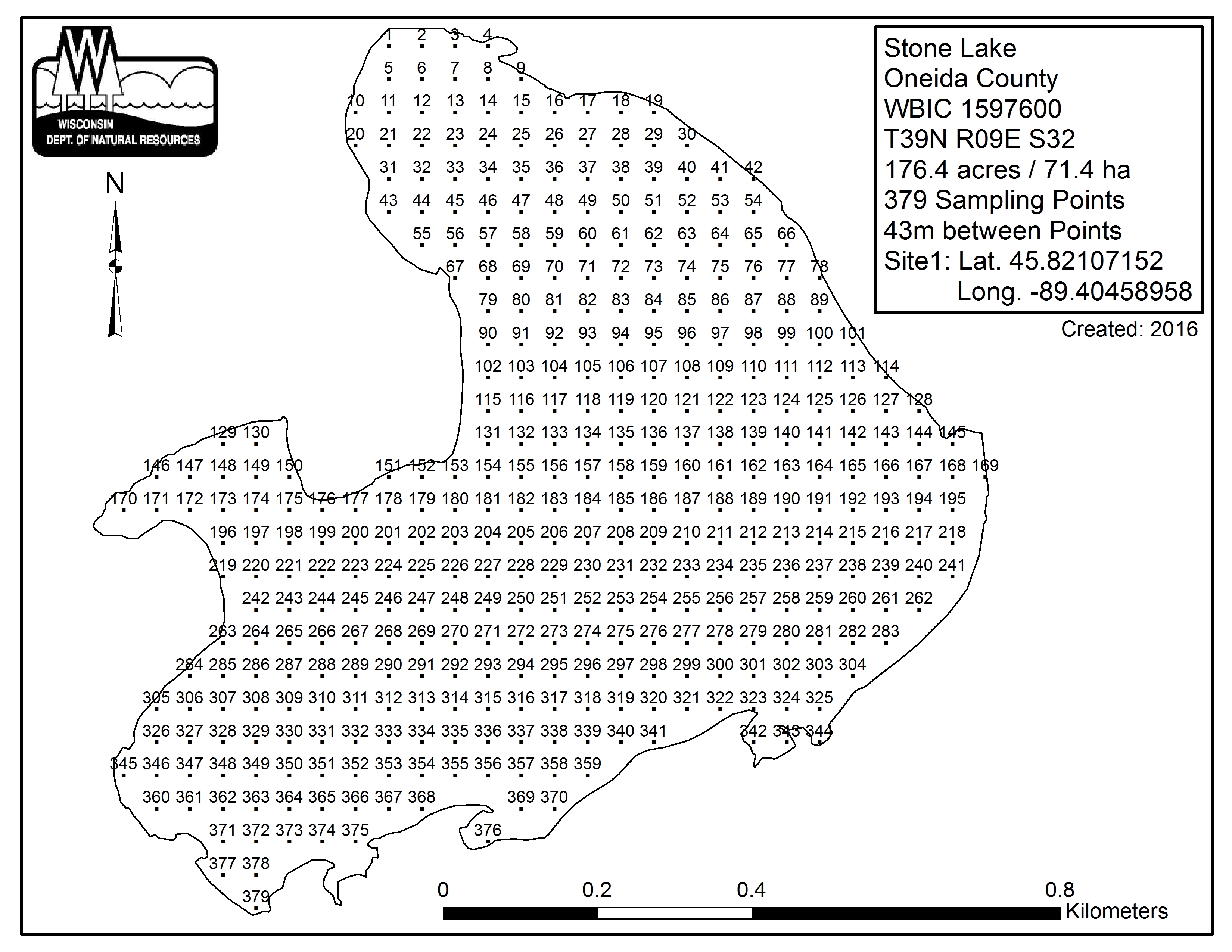 Stone Lake, Oneida County - Aquatic Plant Sampling Map (43 mpts)