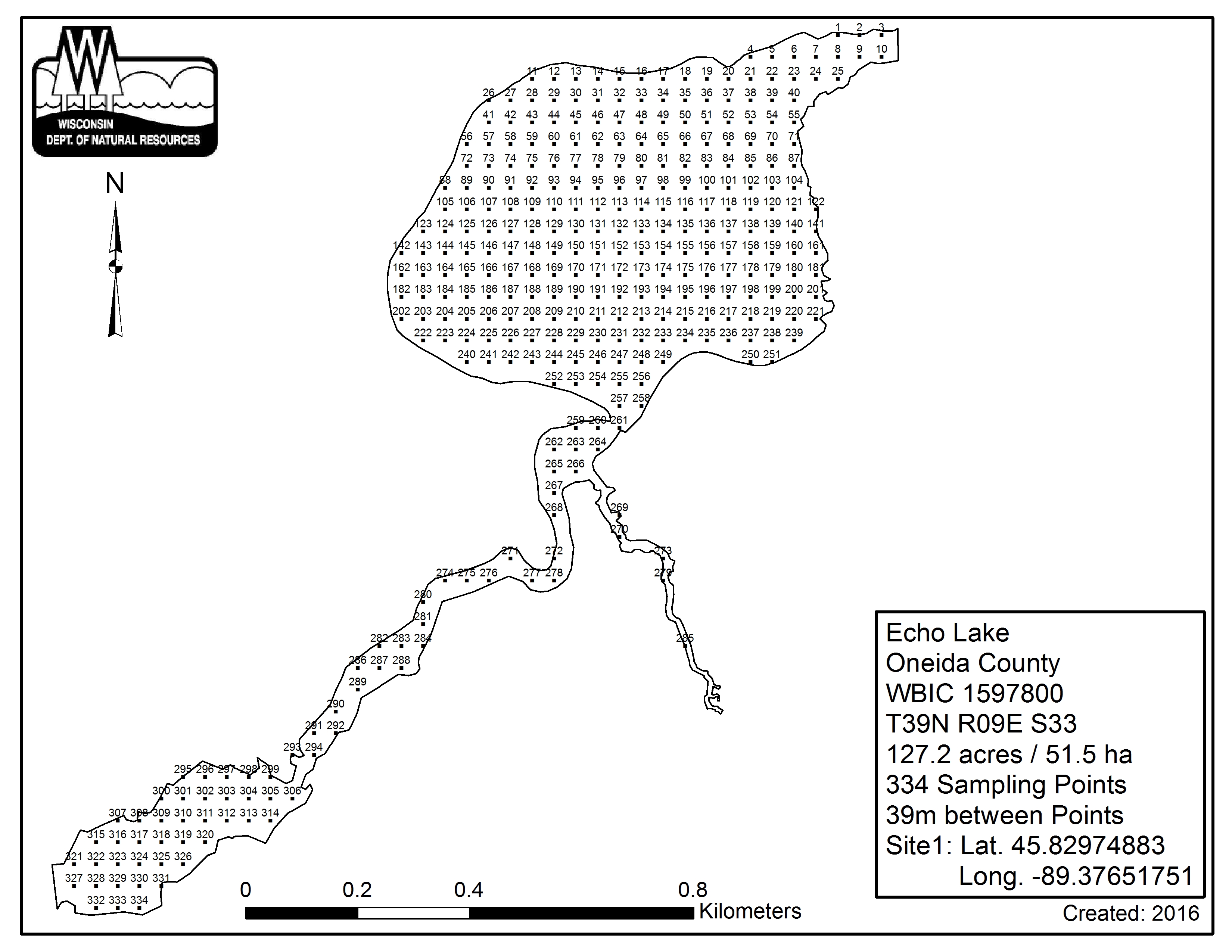 Echo Lake, Oneida County - Aquatic Plant Sampling Map (39 mpts)