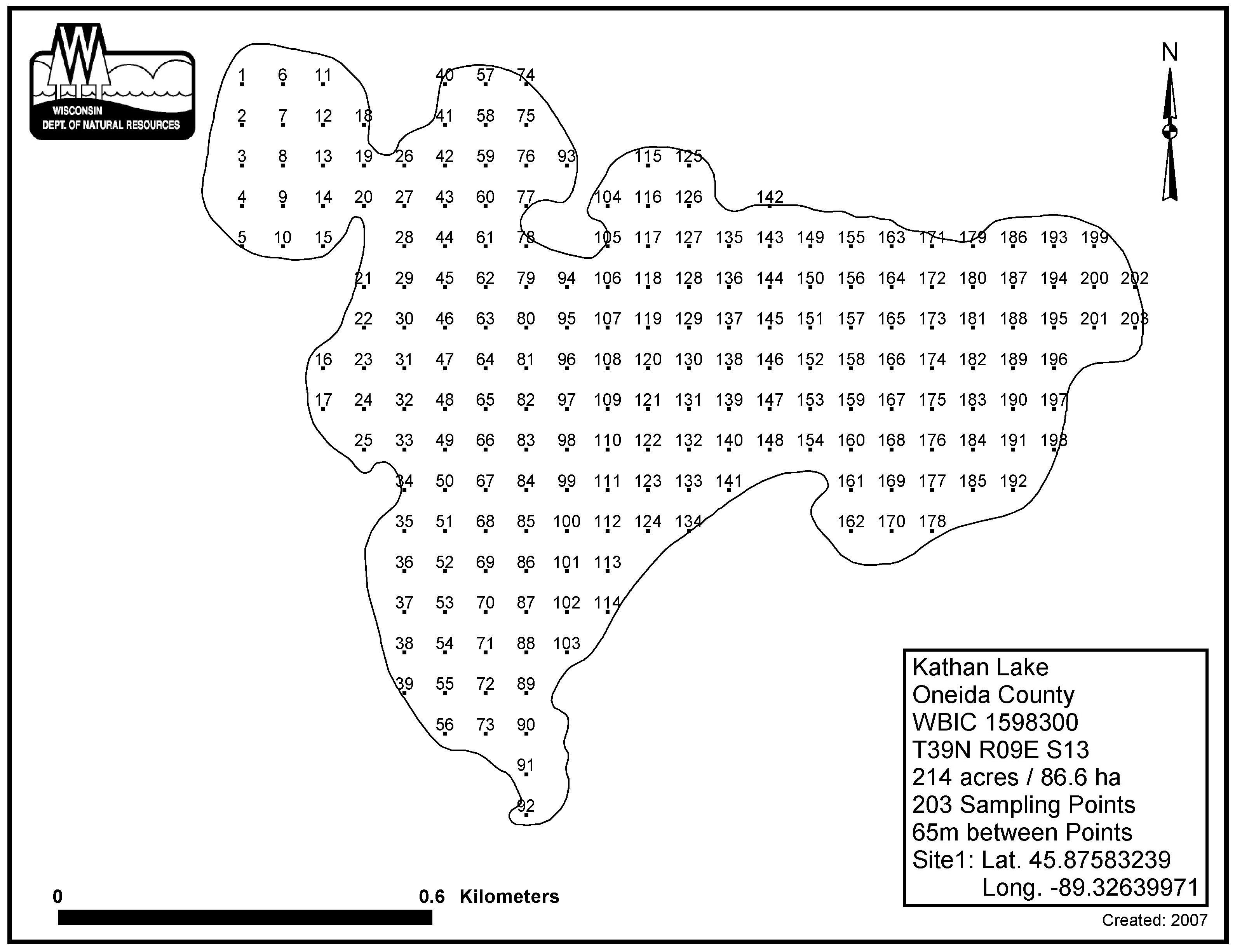 Kathan Lake, Oneida County - Aquatic Plant Sampling Map (65 mpts)