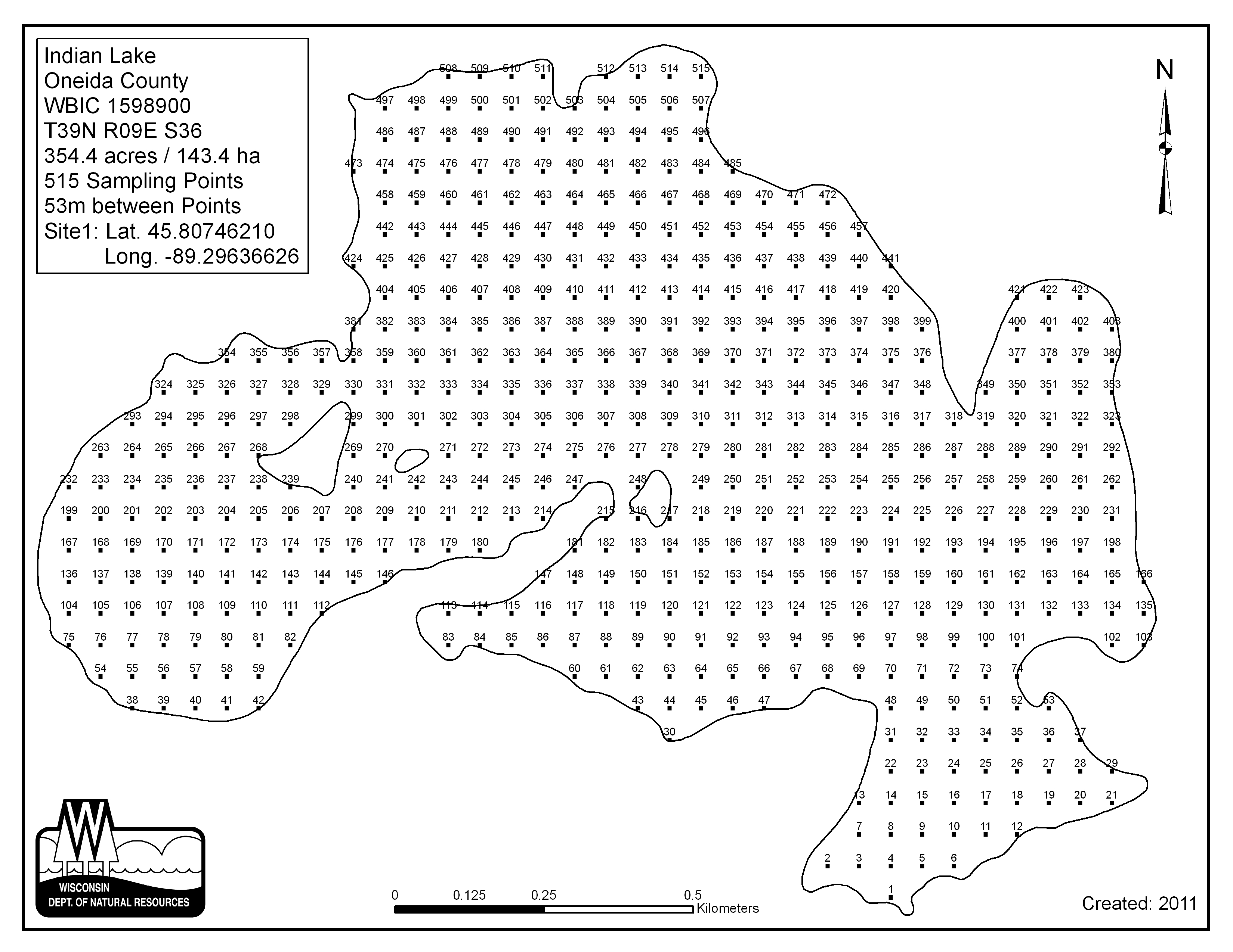 Indian Lake, Oneida County - Aquatic Plant Sampling Map (53 mpts)