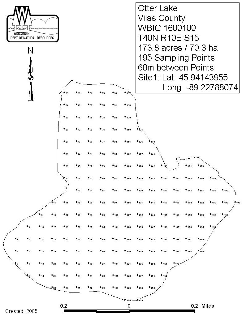 Otter Lake, Vilas County - Aquatic Plant Sampling Map (60 mpts)