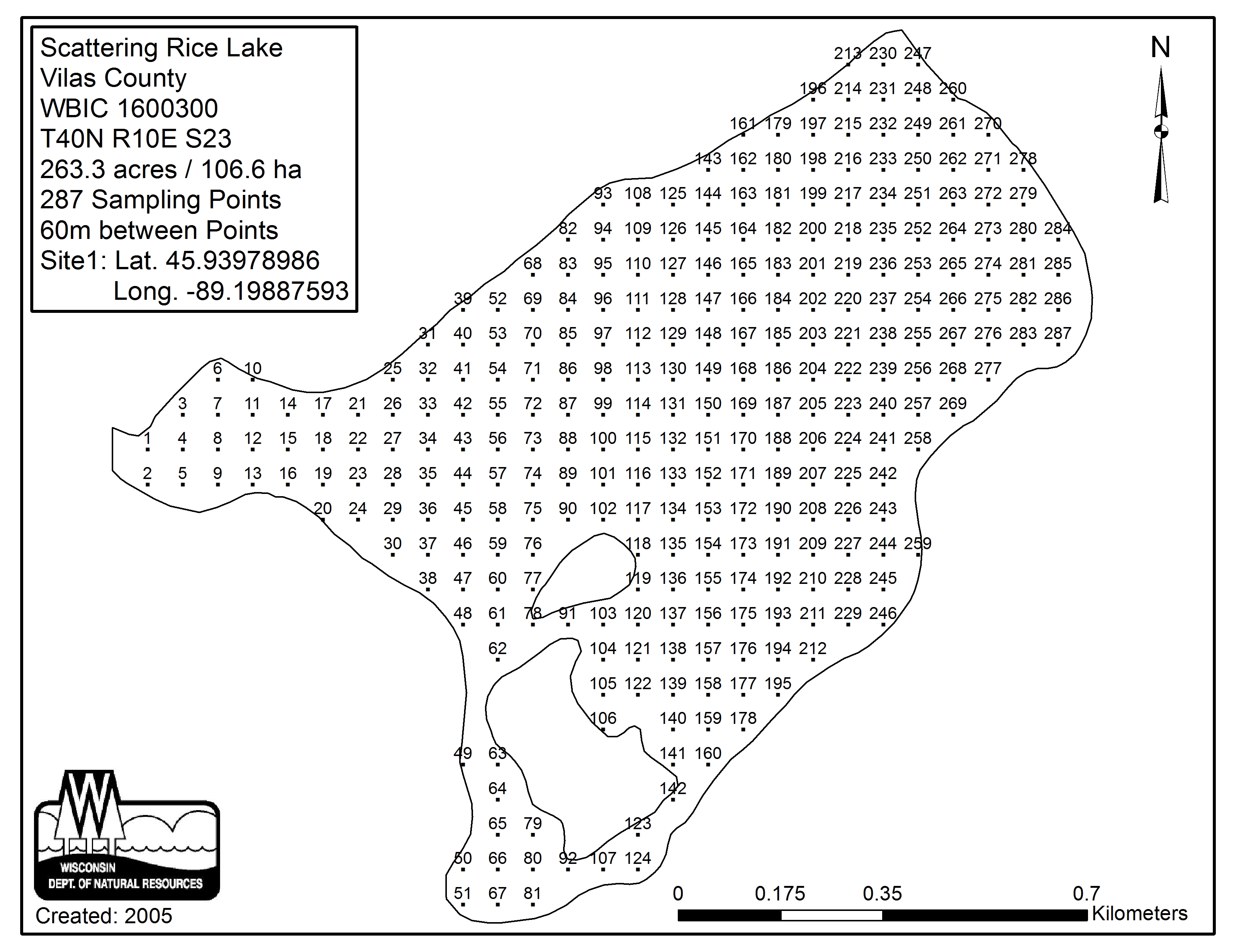 Scattering Rice Lake, Vilas County - Aquatic Plant Sampling Map (60 mpts)