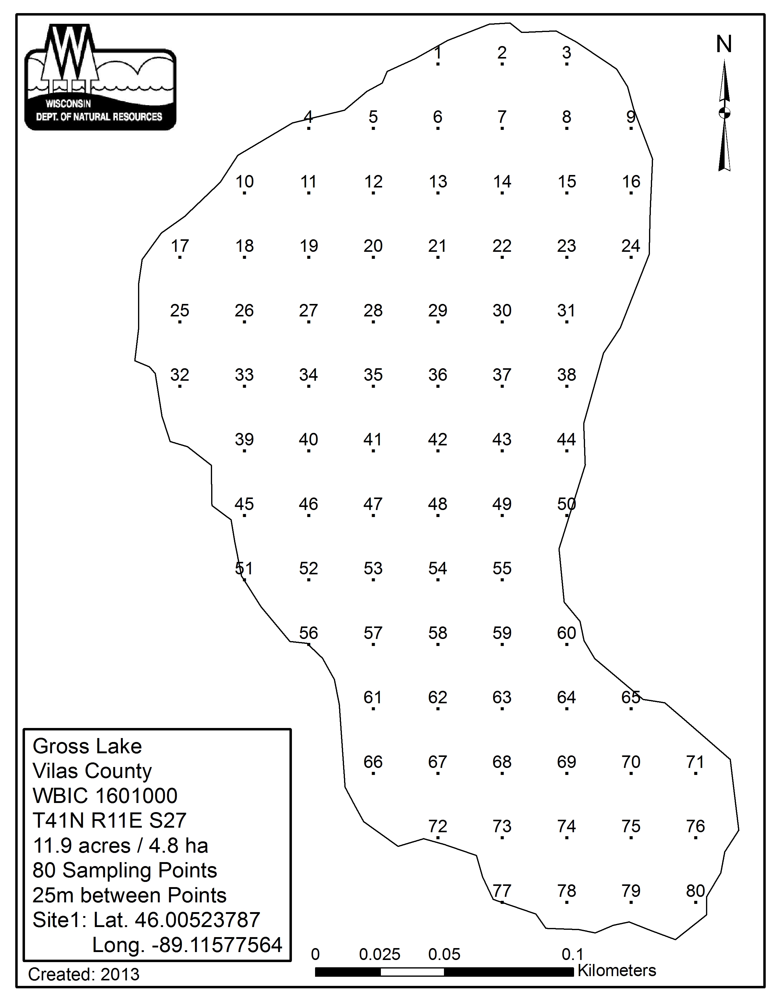 Gross Lake, Vilas County - Aquatic Plant Sampling Map (25 mpts)