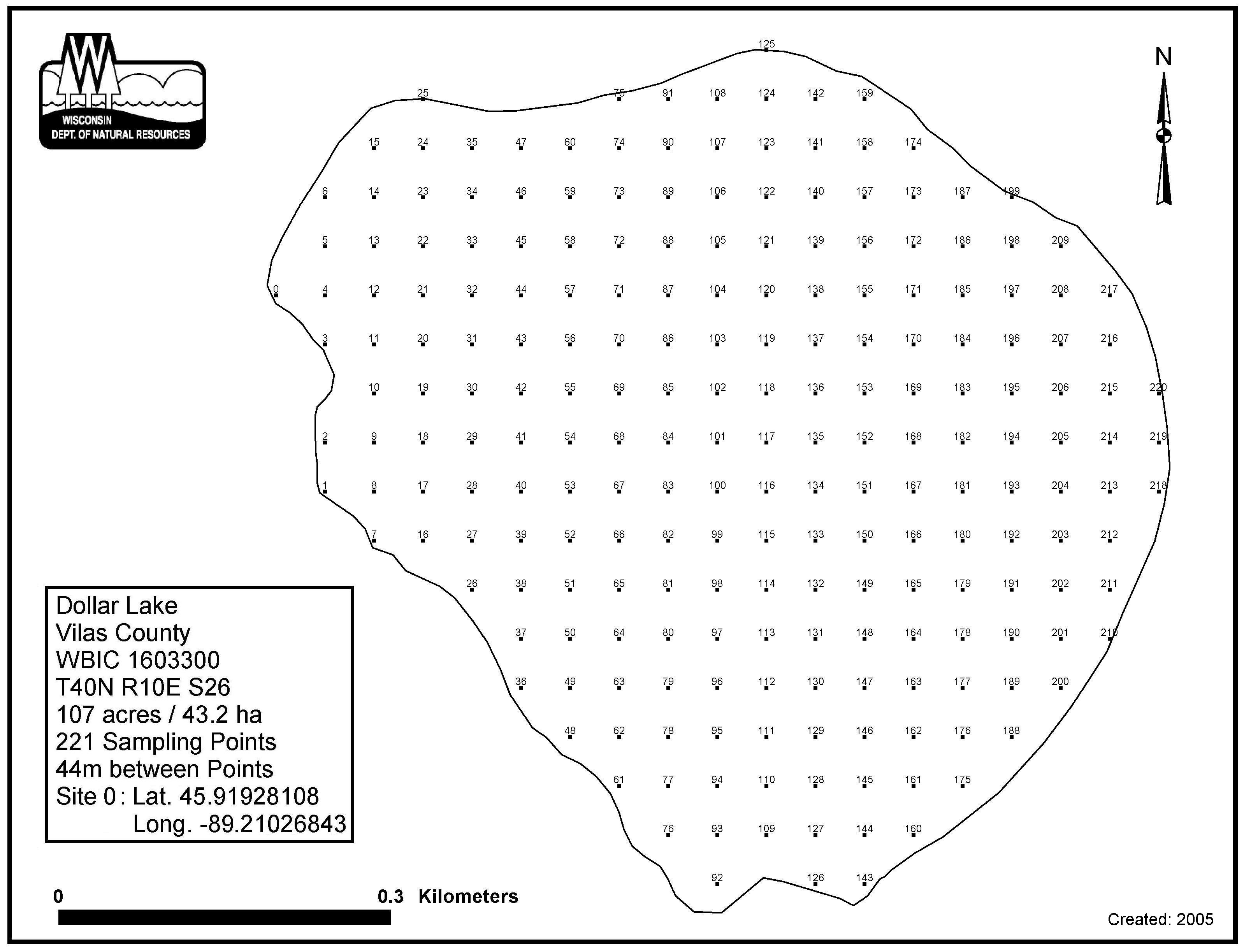 Dollar Lake, Vilas County - Aquatic Plant Sampling Map (44 mpts)