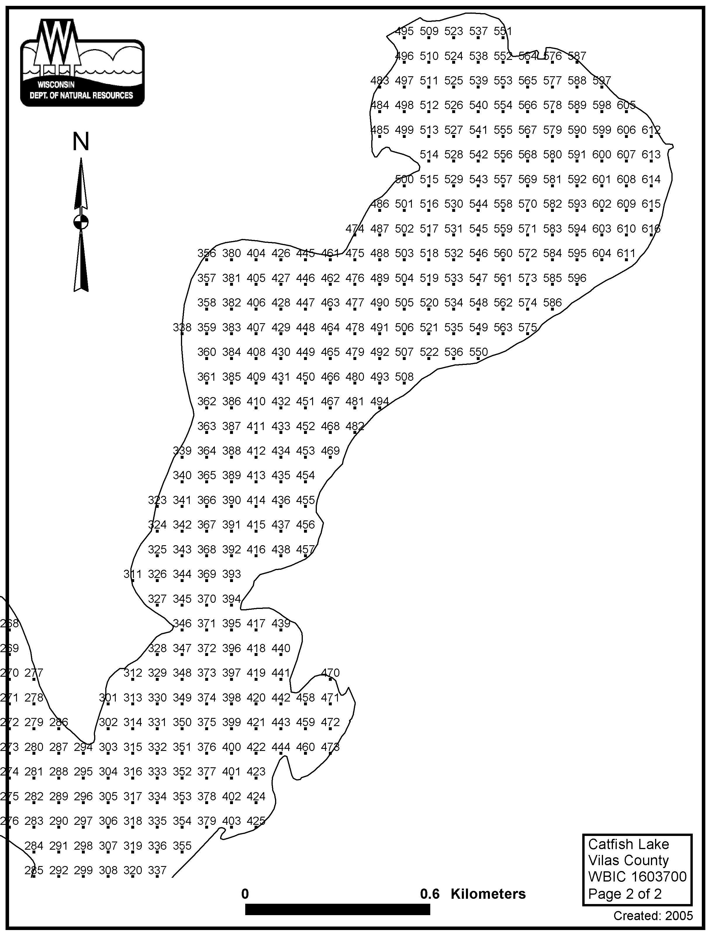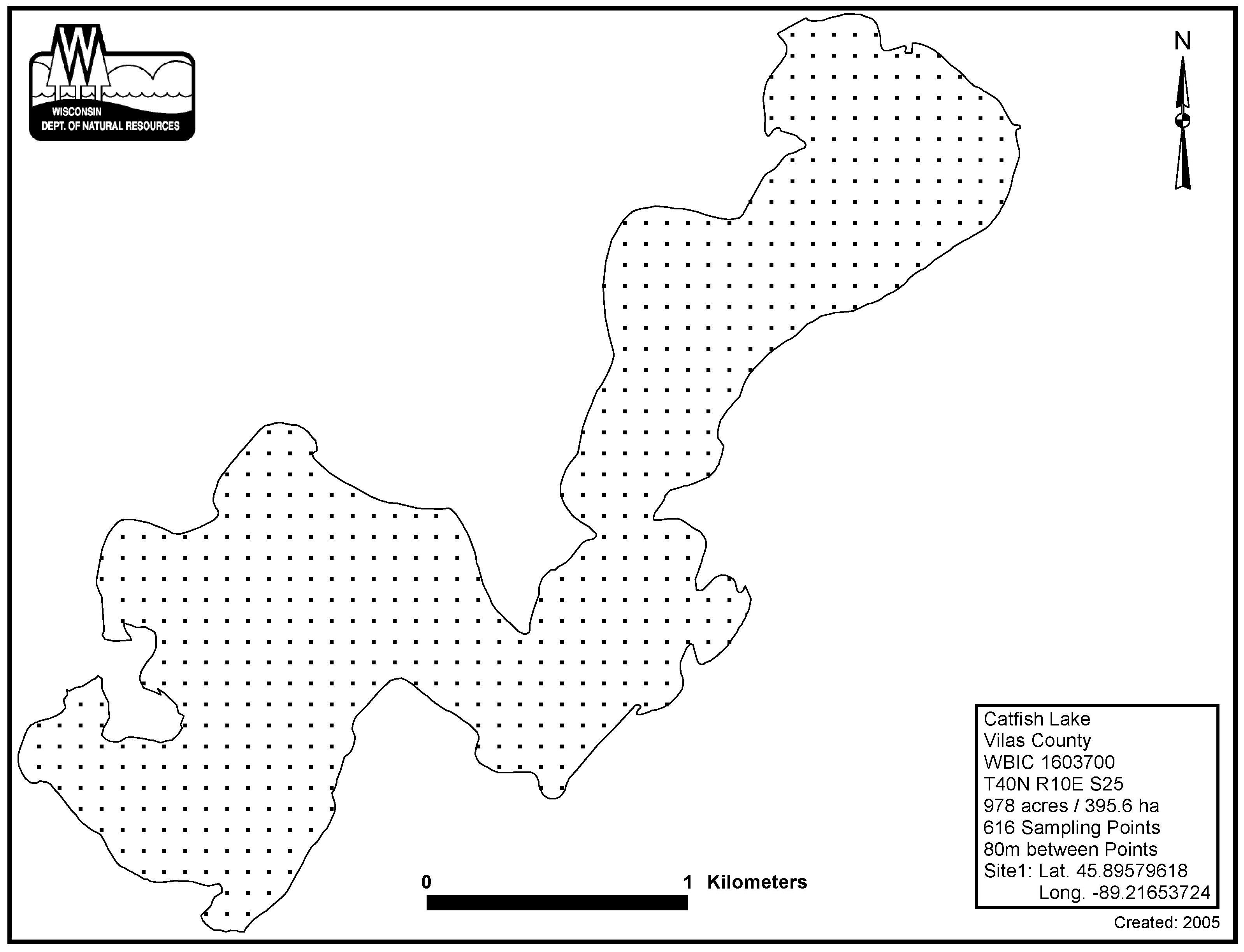 Catfish Lake, Vilas County - Aquatic Plant Sampling Map (2)(80 mpts)